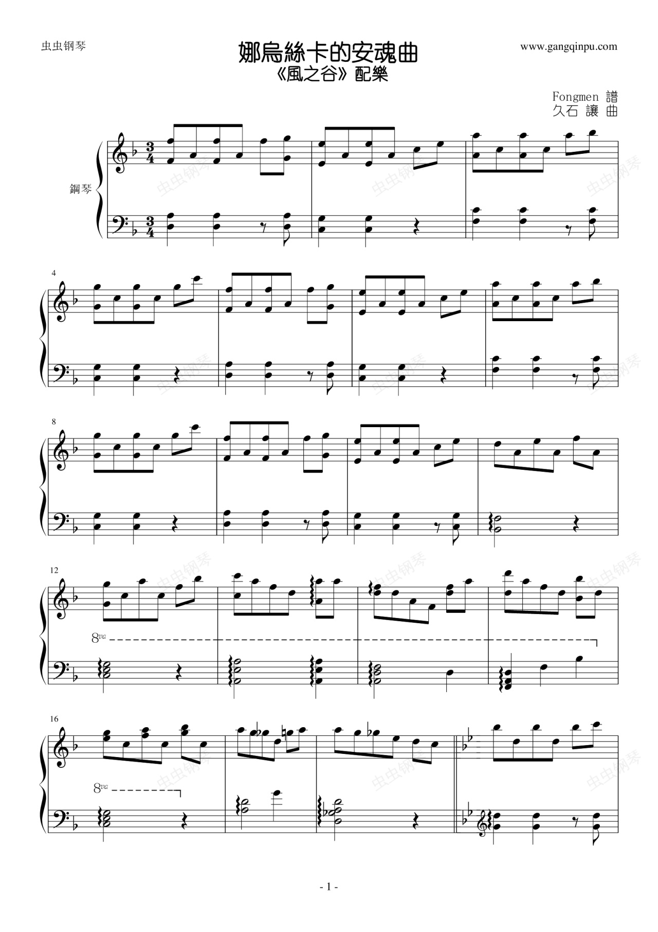 钢琴谱:风之谷-娜乌丝卡的安魂曲