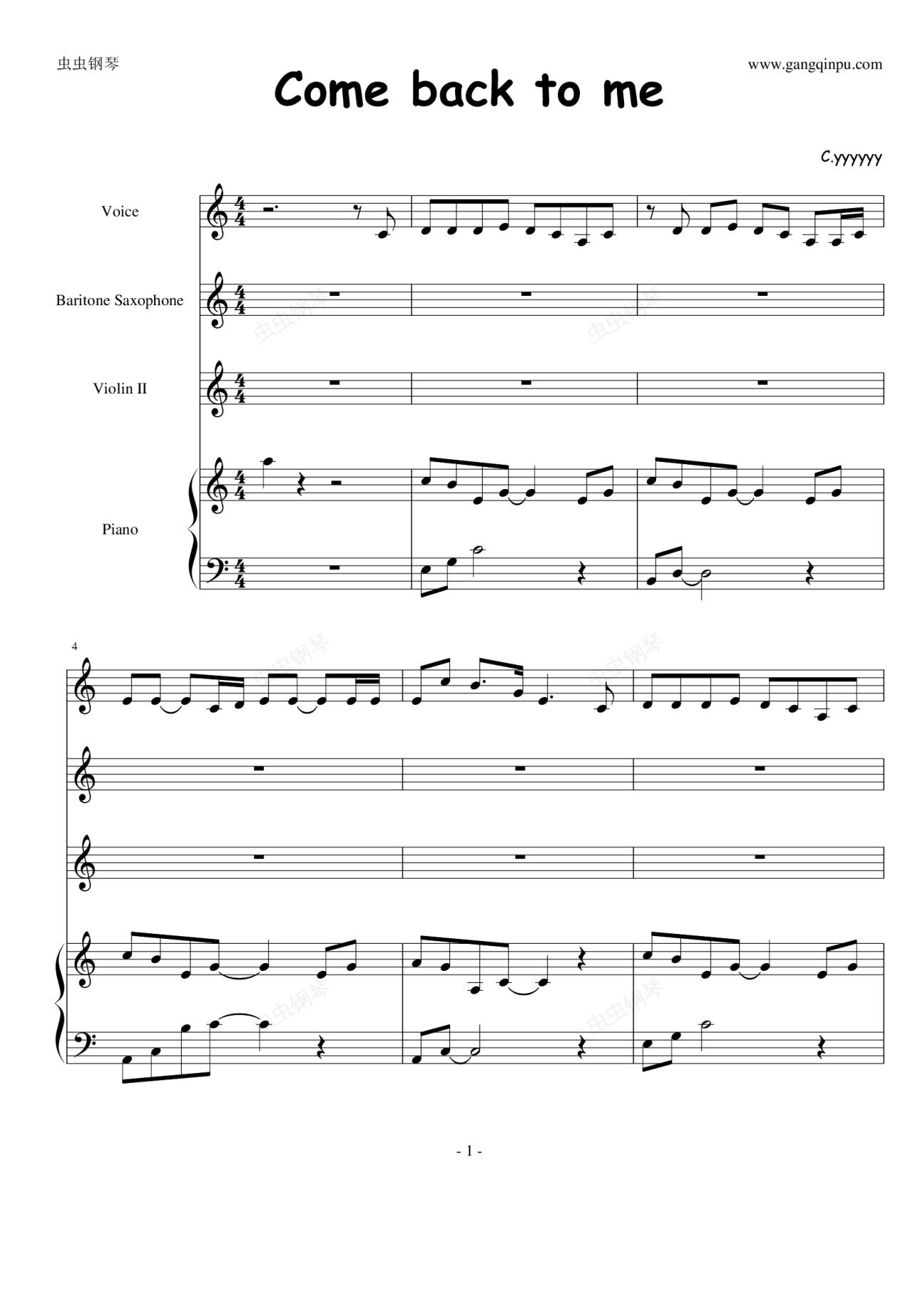 钢琴谱:Come back to me【弹唱版】