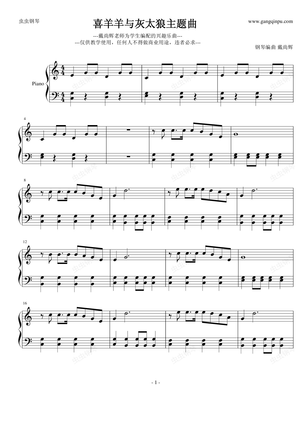 钢琴谱:喜羊羊与灰太狼主题曲 学生最爱版