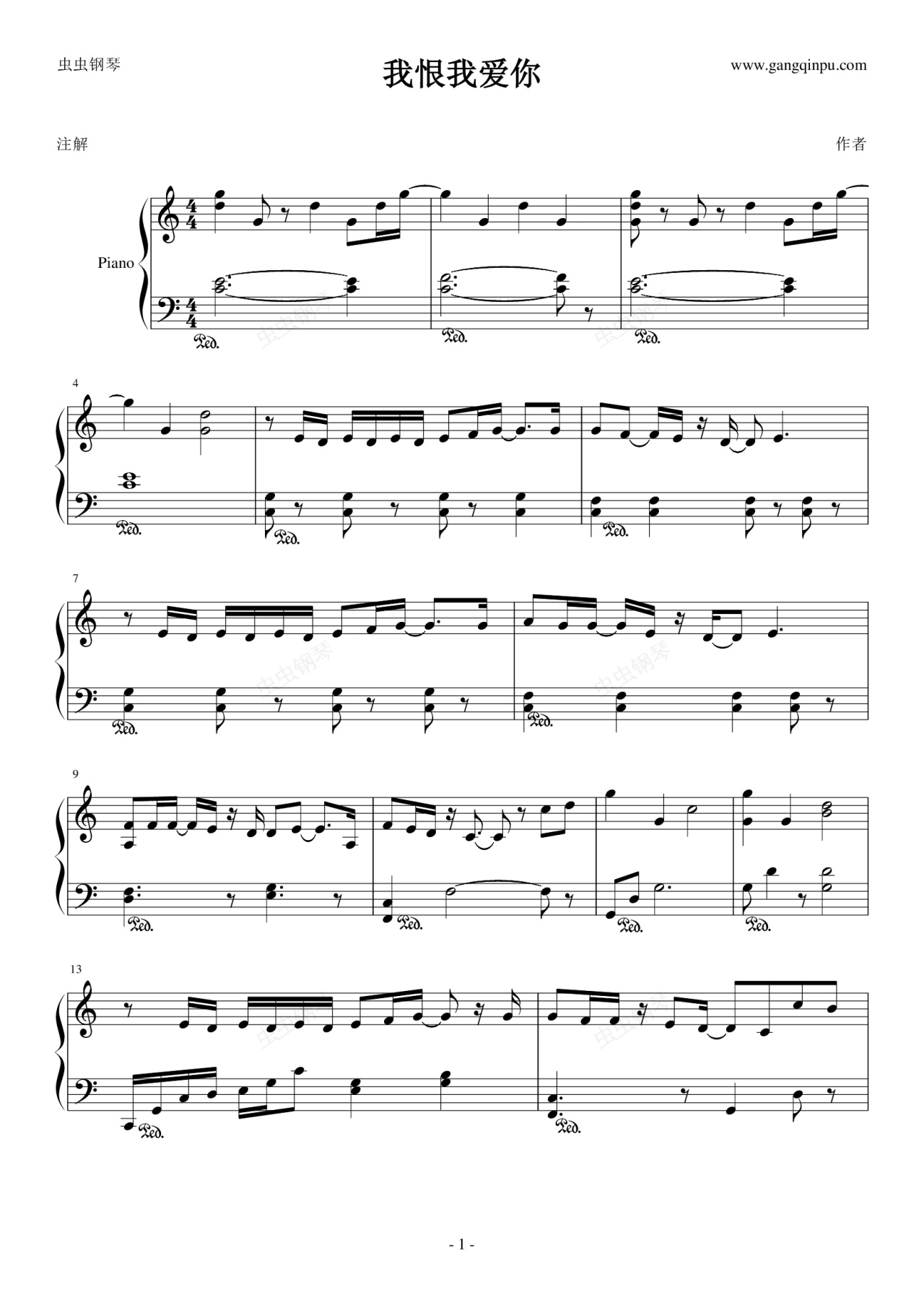 钢琴谱:我恨我爱你