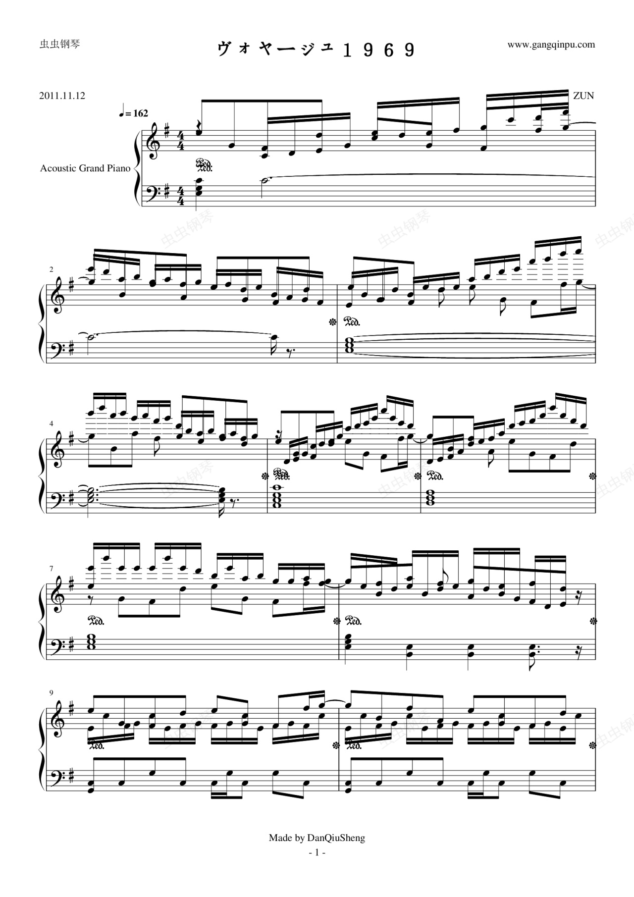 钢琴谱:【HARD】ヴォヤージュ1969(东方永夜抄第6面)