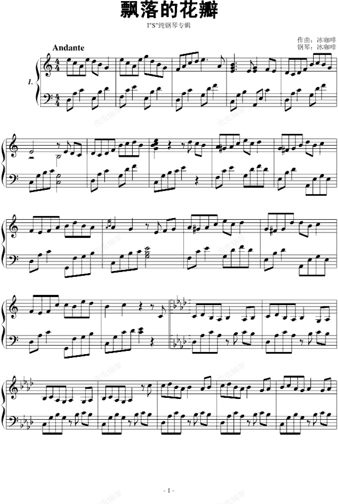 钢琴谱:飘落的花瓣【IS纯钢琴专辑】