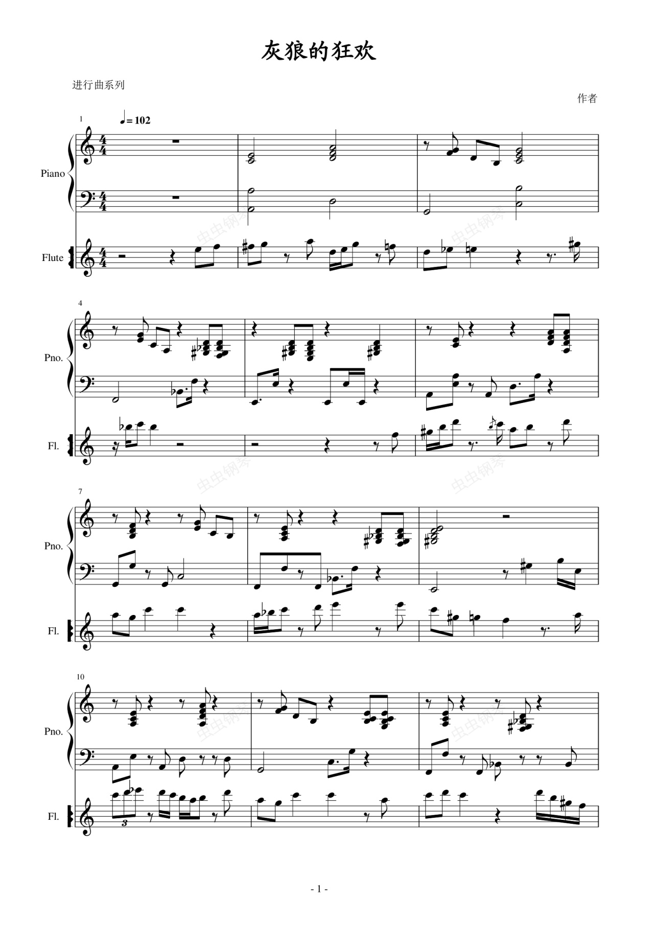 钢琴谱:饥饿的灰狼