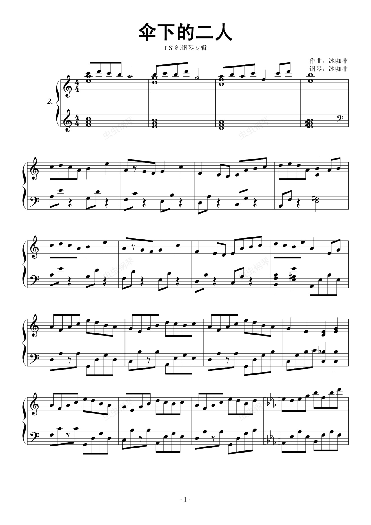 钢琴谱:伞下的二人【IS纯钢琴专辑】
