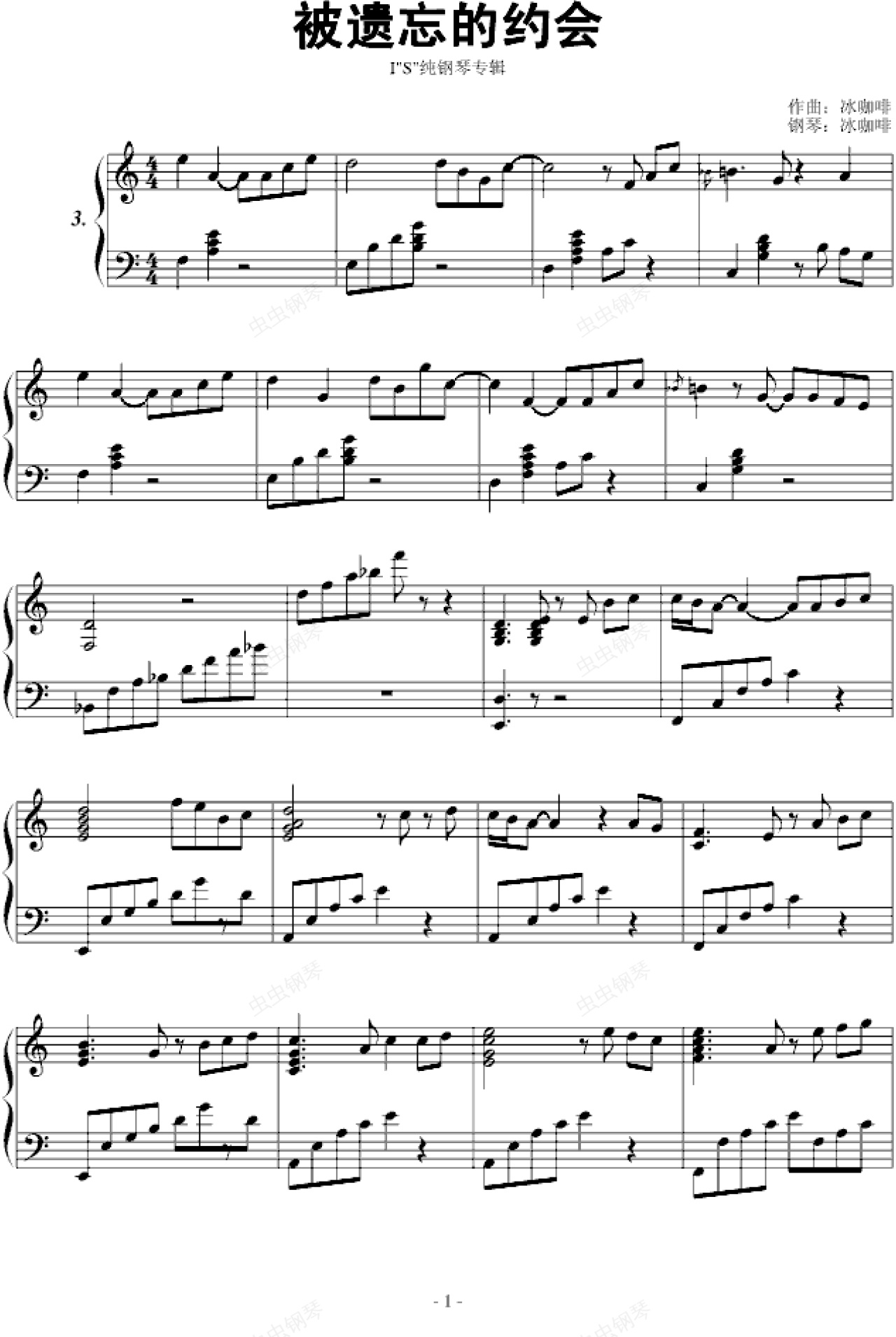 钢琴谱:被遗忘的约会【IS纯钢琴专辑】