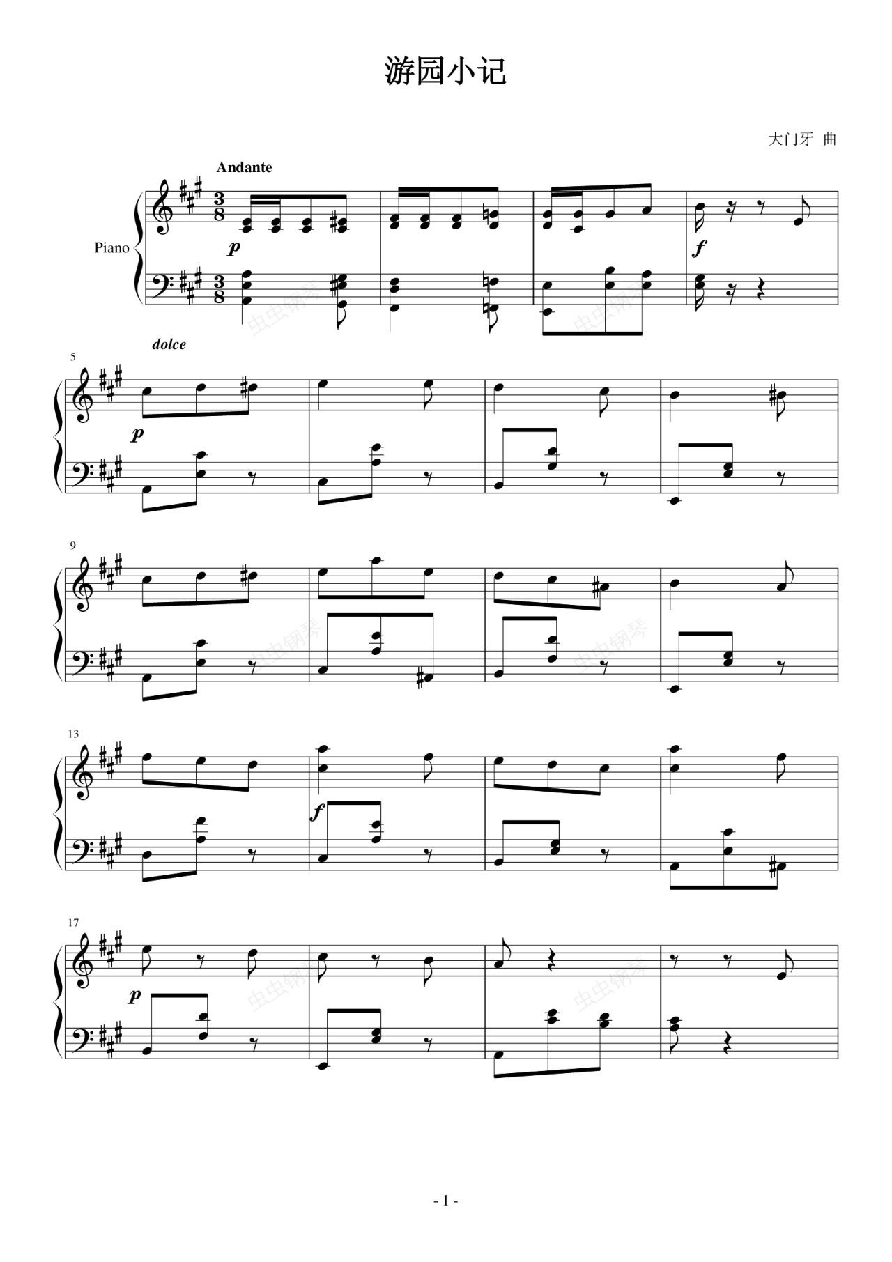 您的位置: 首页 > 钢琴谱库 > 游园小记