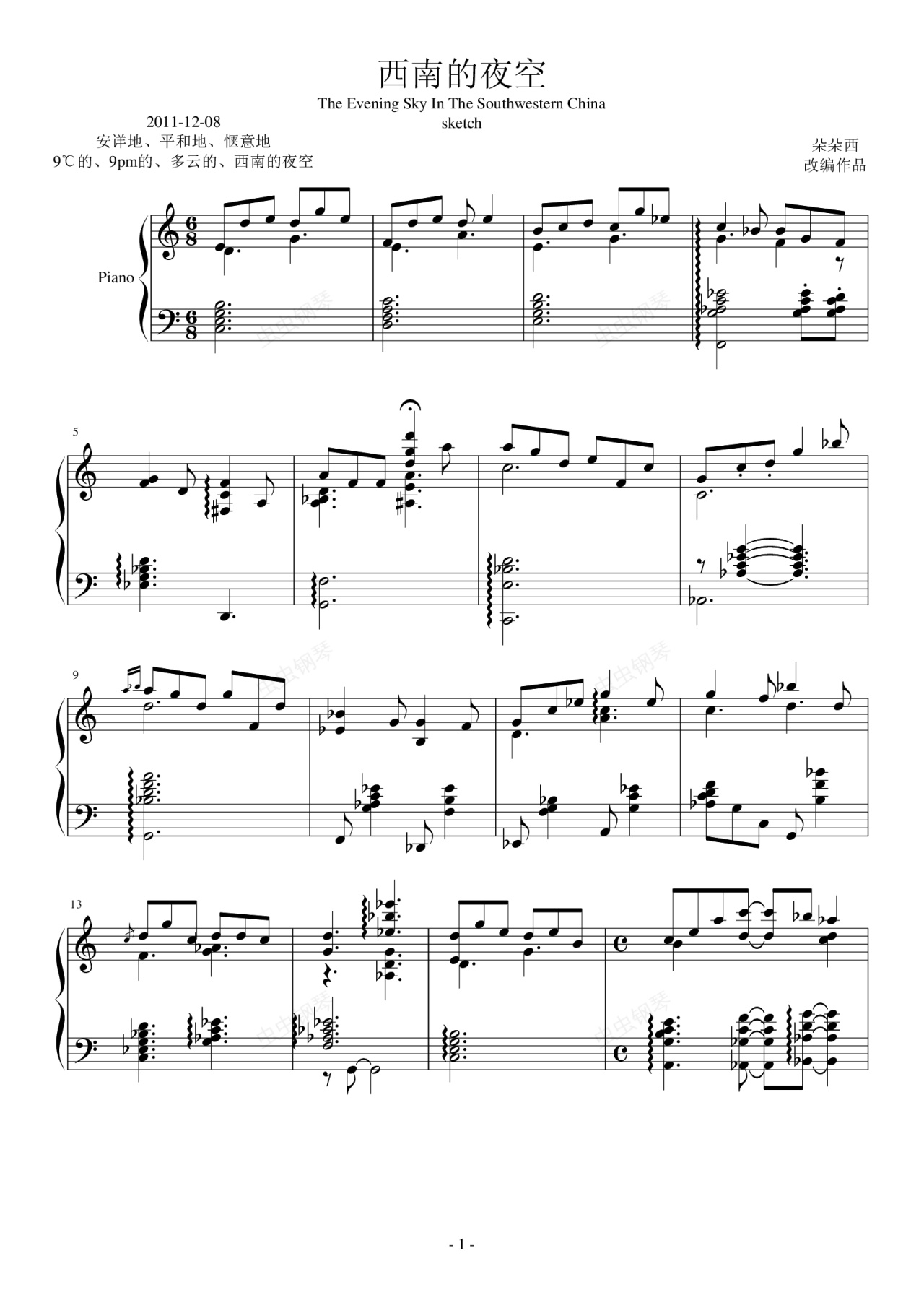 钢琴谱:西南的夜空