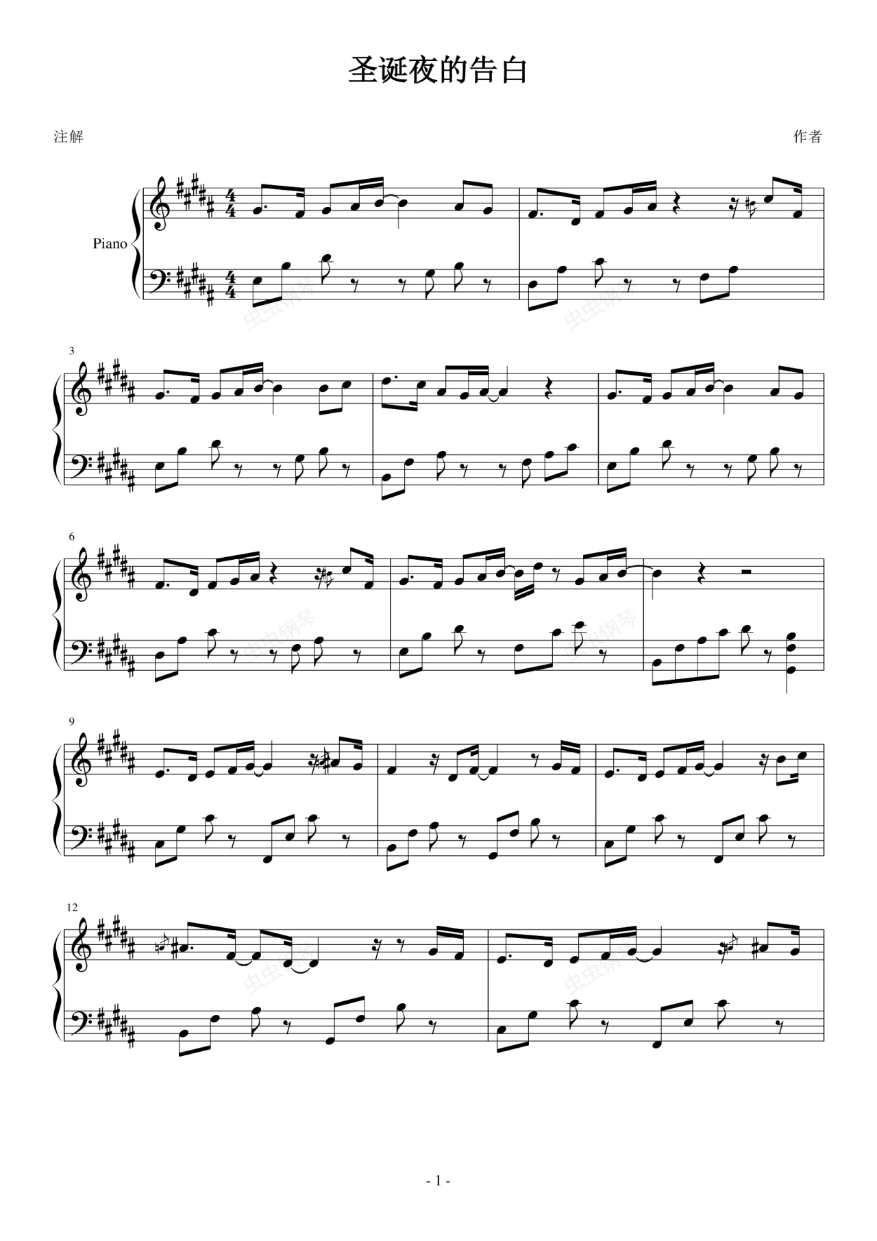 钢琴谱:圣诞夜的告白【IS纯钢琴专辑】