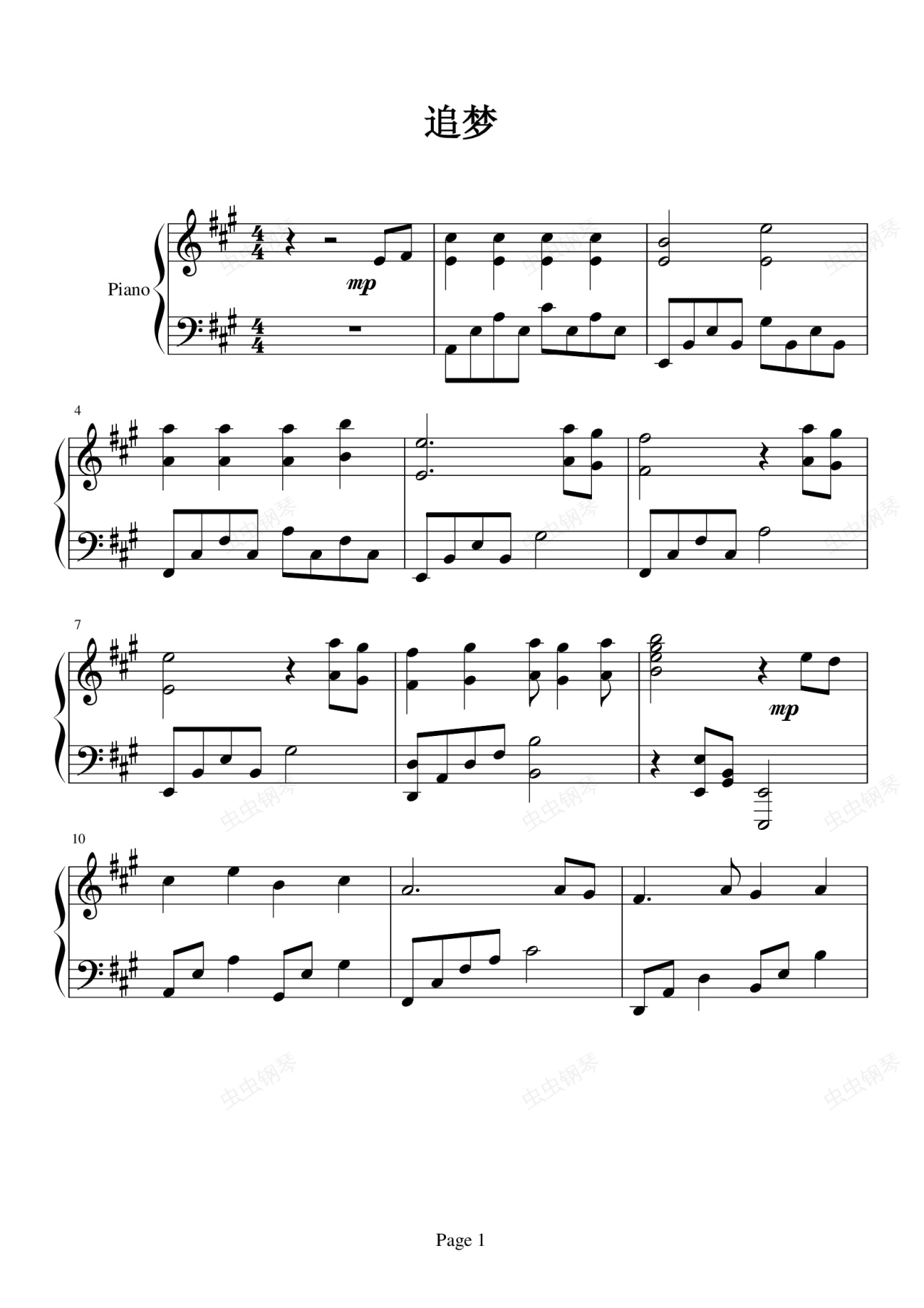 钢琴谱:追梦