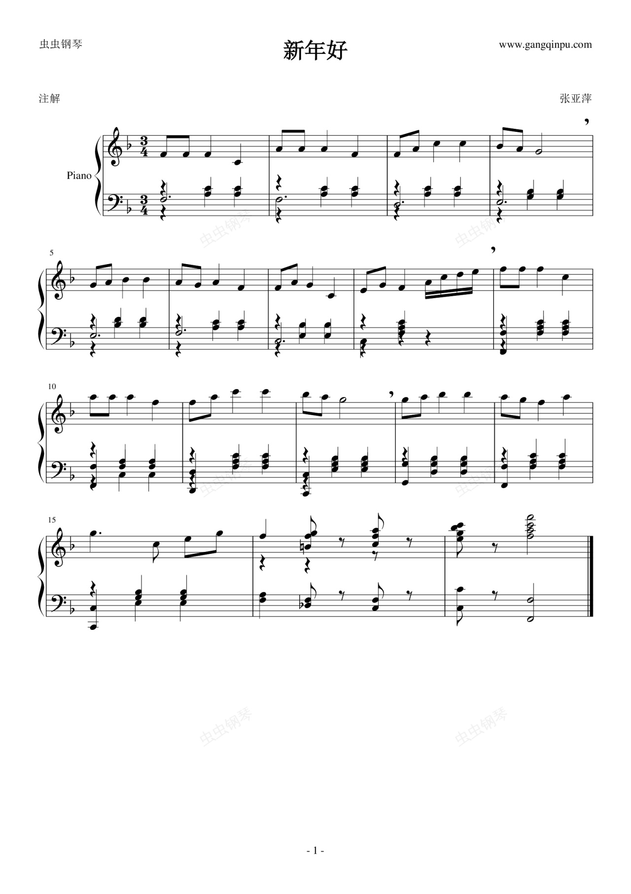 钢琴谱:儿歌 新年好
