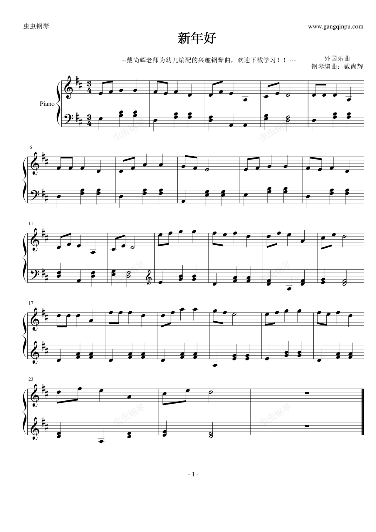 钢琴谱:新年好--幼儿兴趣钢琴曲