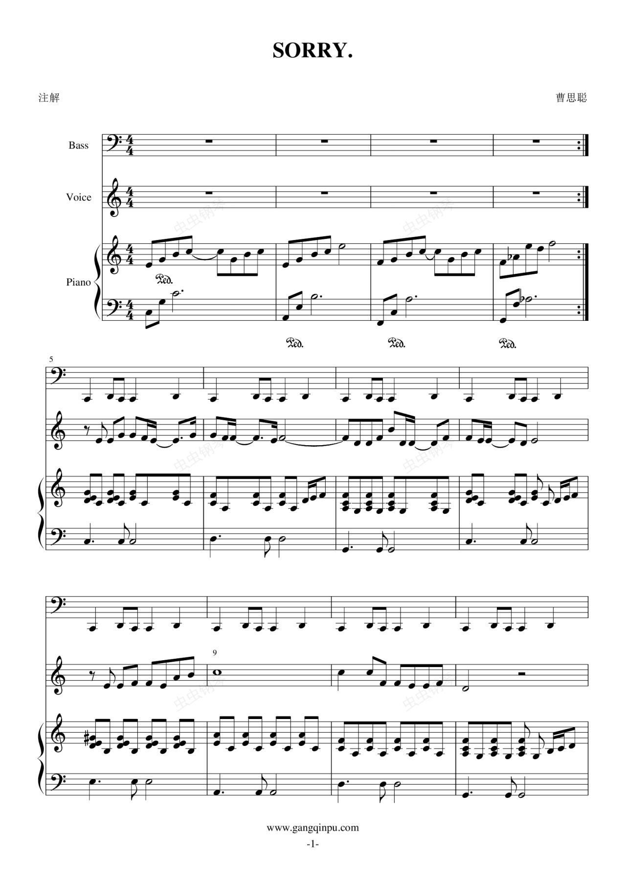 钢琴谱:SORRY