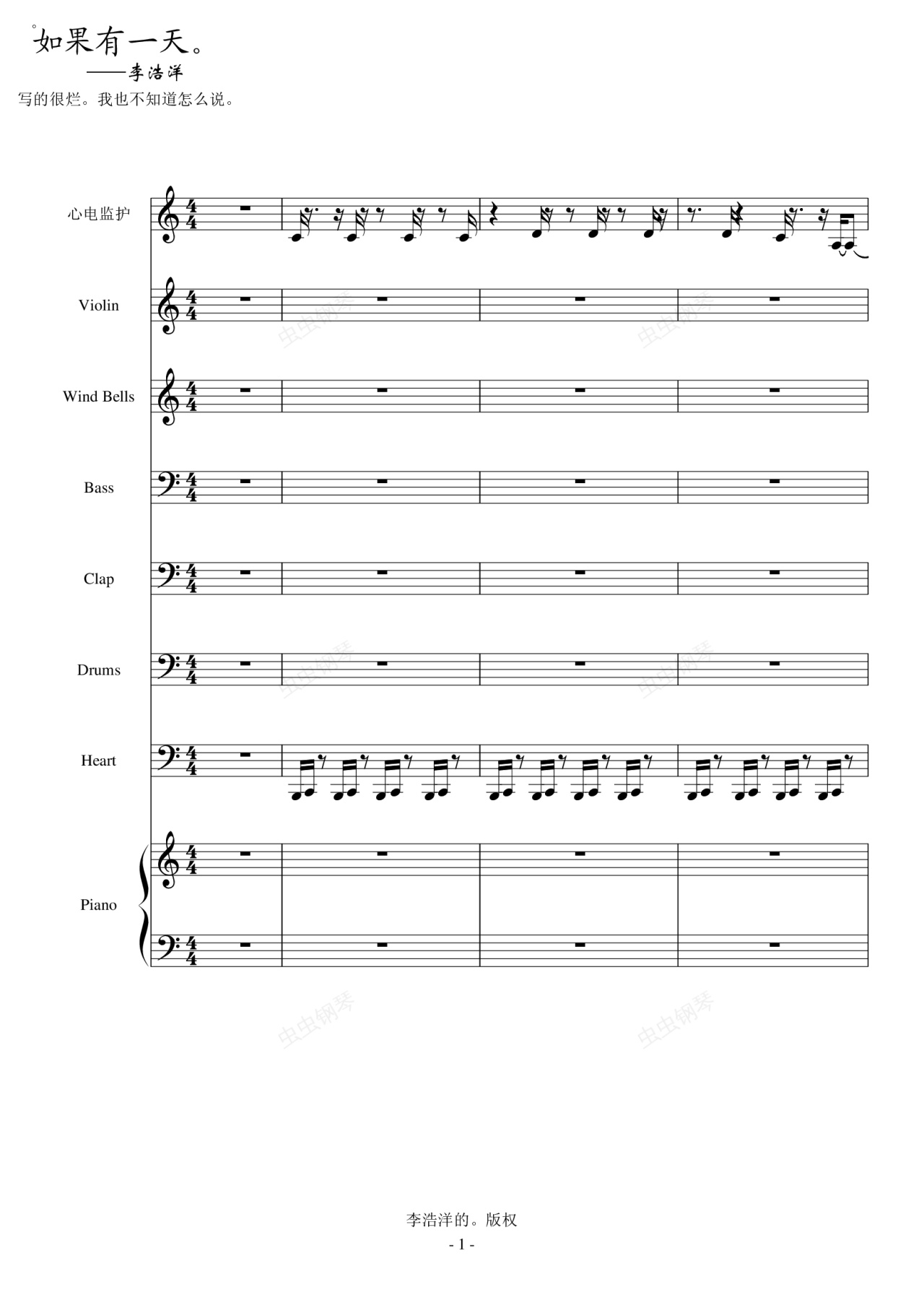 钢琴谱:如果有一天