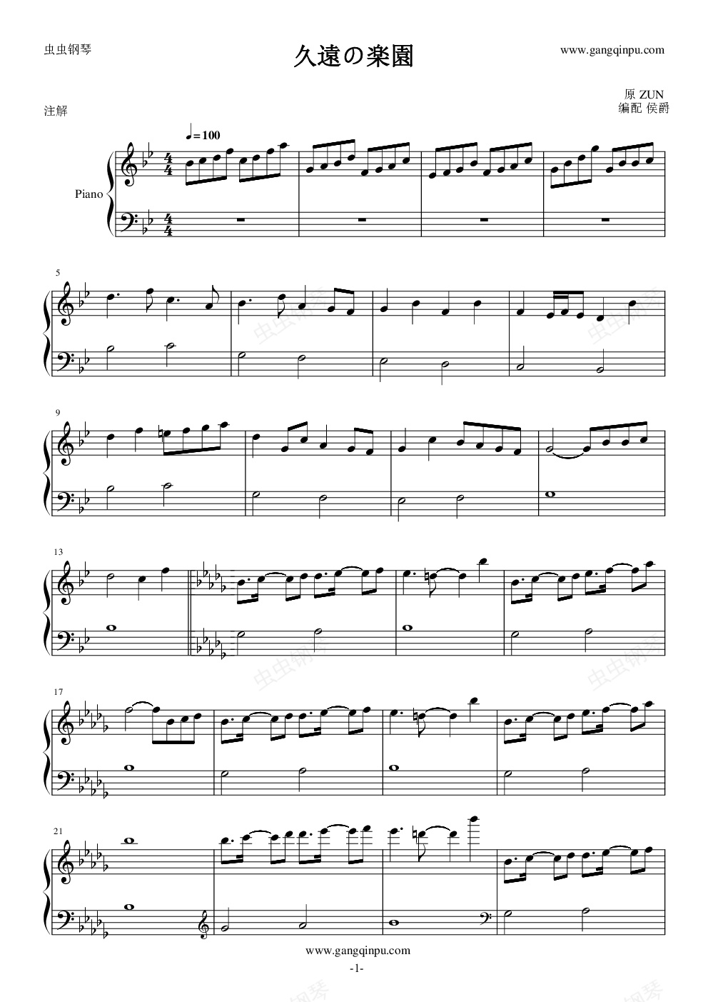 钢琴谱:【東方怪綺談】久遠の楽園-东方