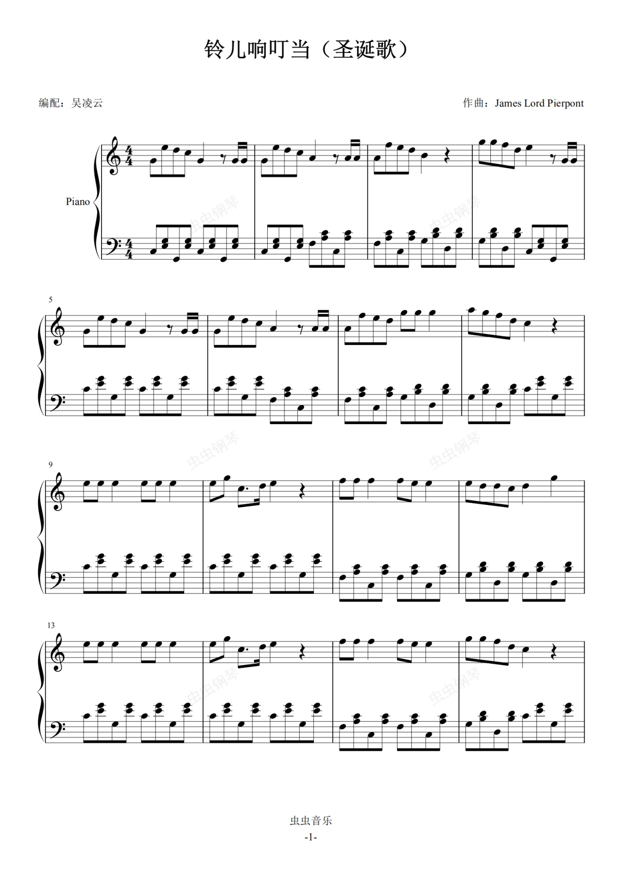钢琴谱:圣诞歌(铃儿响叮当)简单实用版