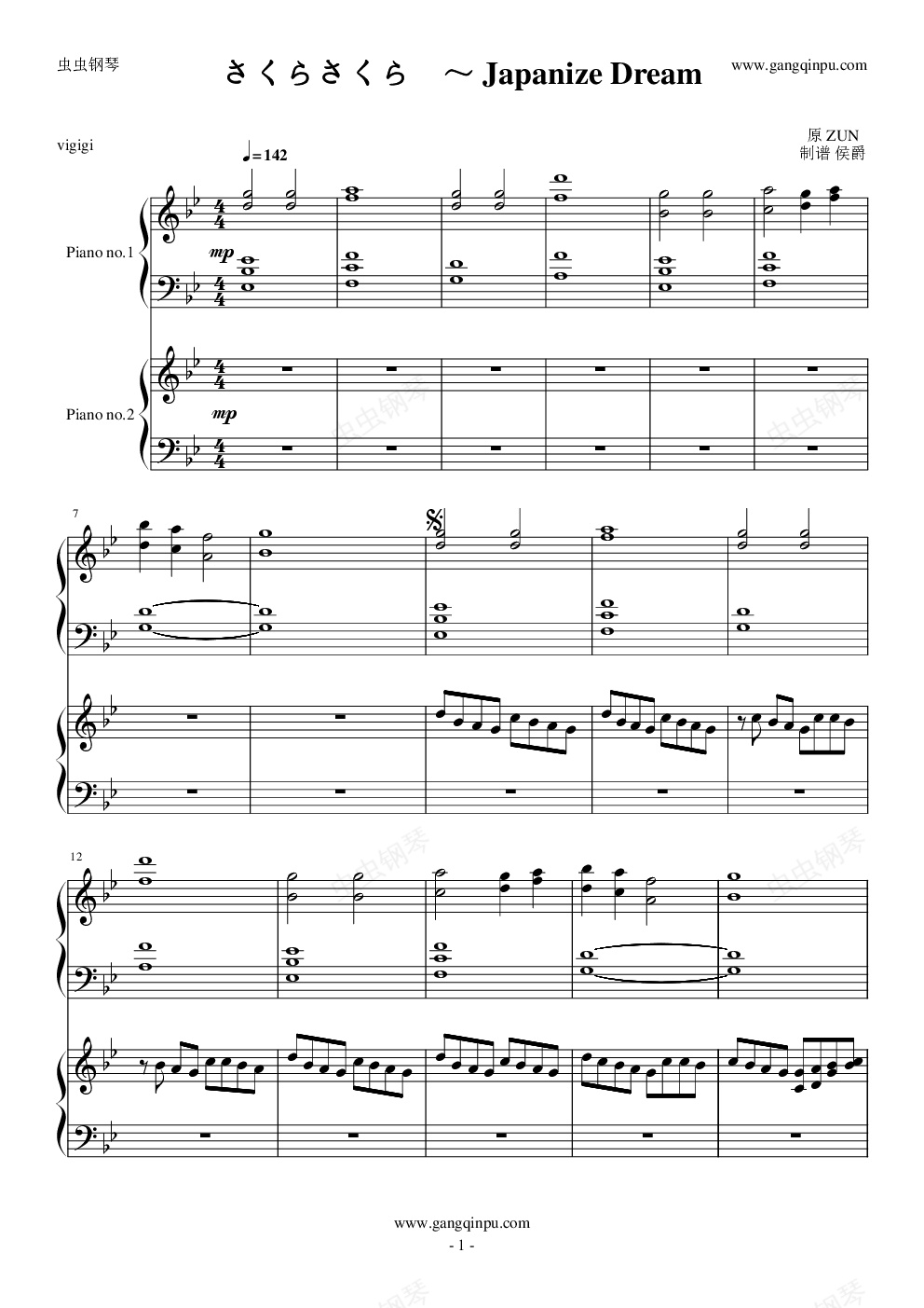 钢琴谱:【东方】さくらさくら~Japanize Dream(双钢琴)