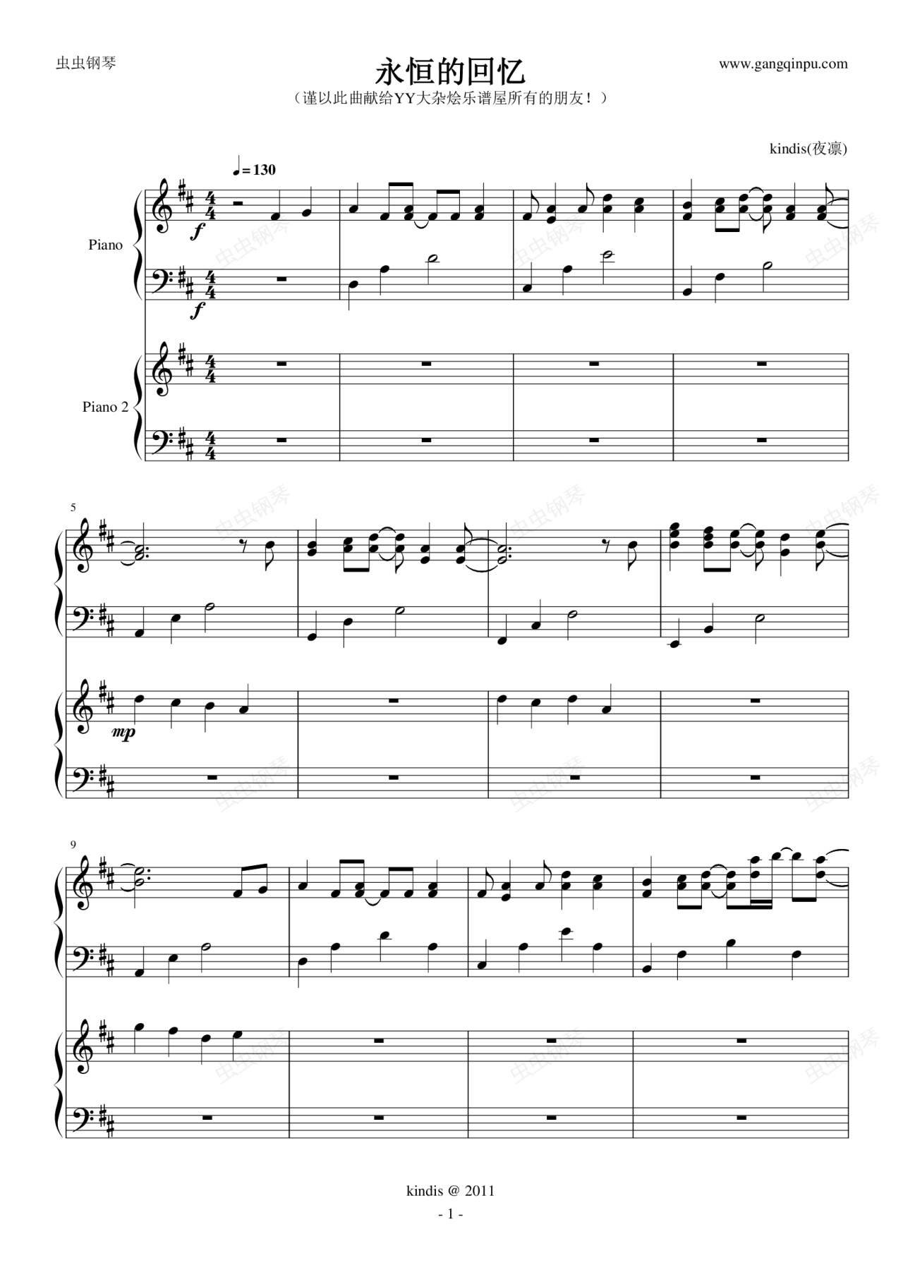 这个谱子是在大概1年前写的,另外由于中间音程跨度过大,似乎给演奏者来弹的话,两只手没办法完成弹奏,因此分了两个部分,需要演奏的话自己想办法吧。。(笑~~)