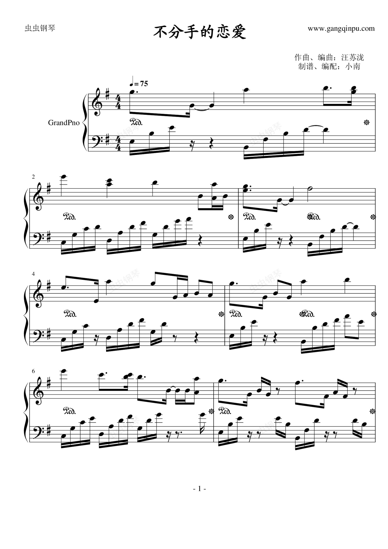 钢琴谱:不分手的恋爱