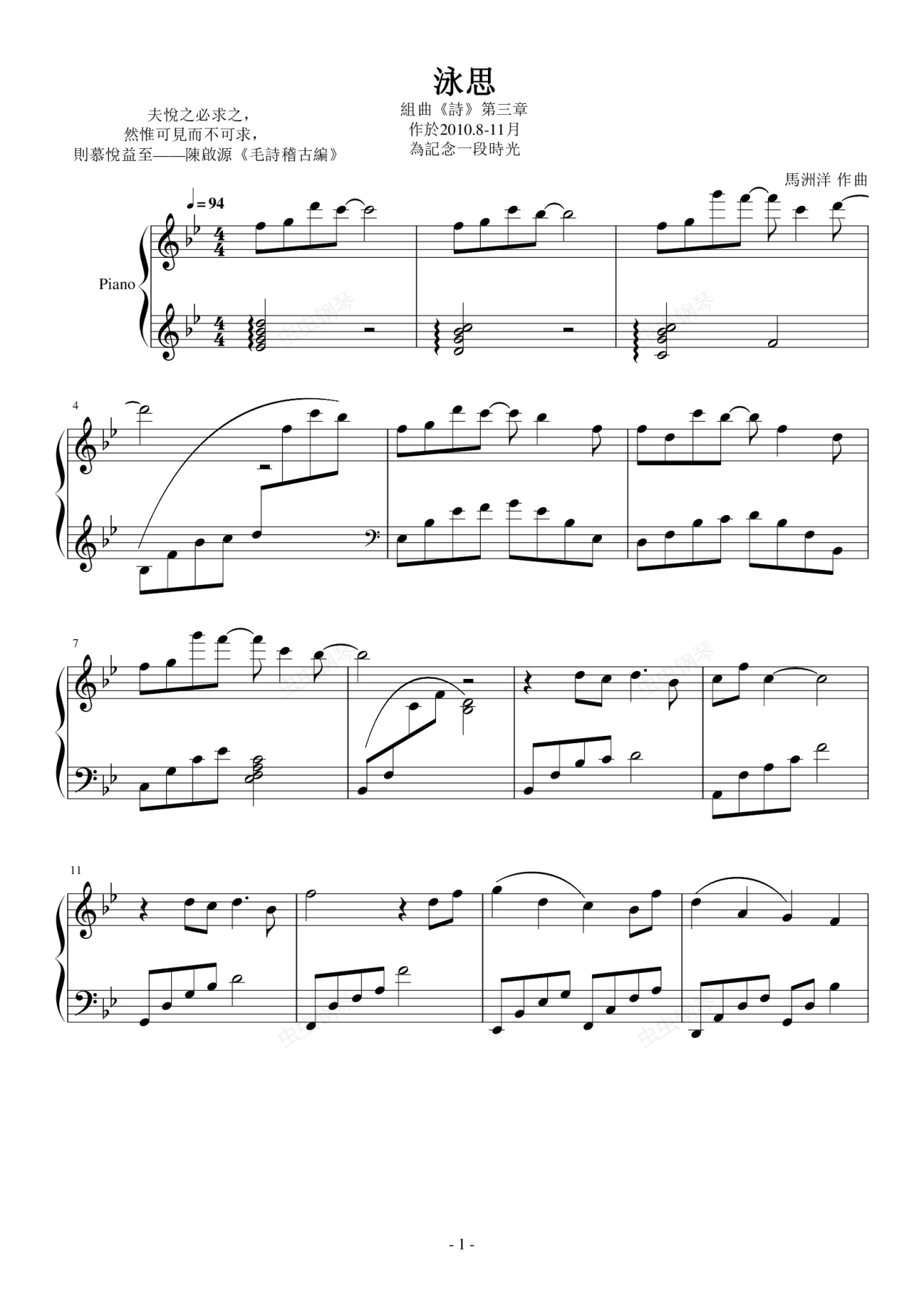钢琴谱:泳思(钢琴)