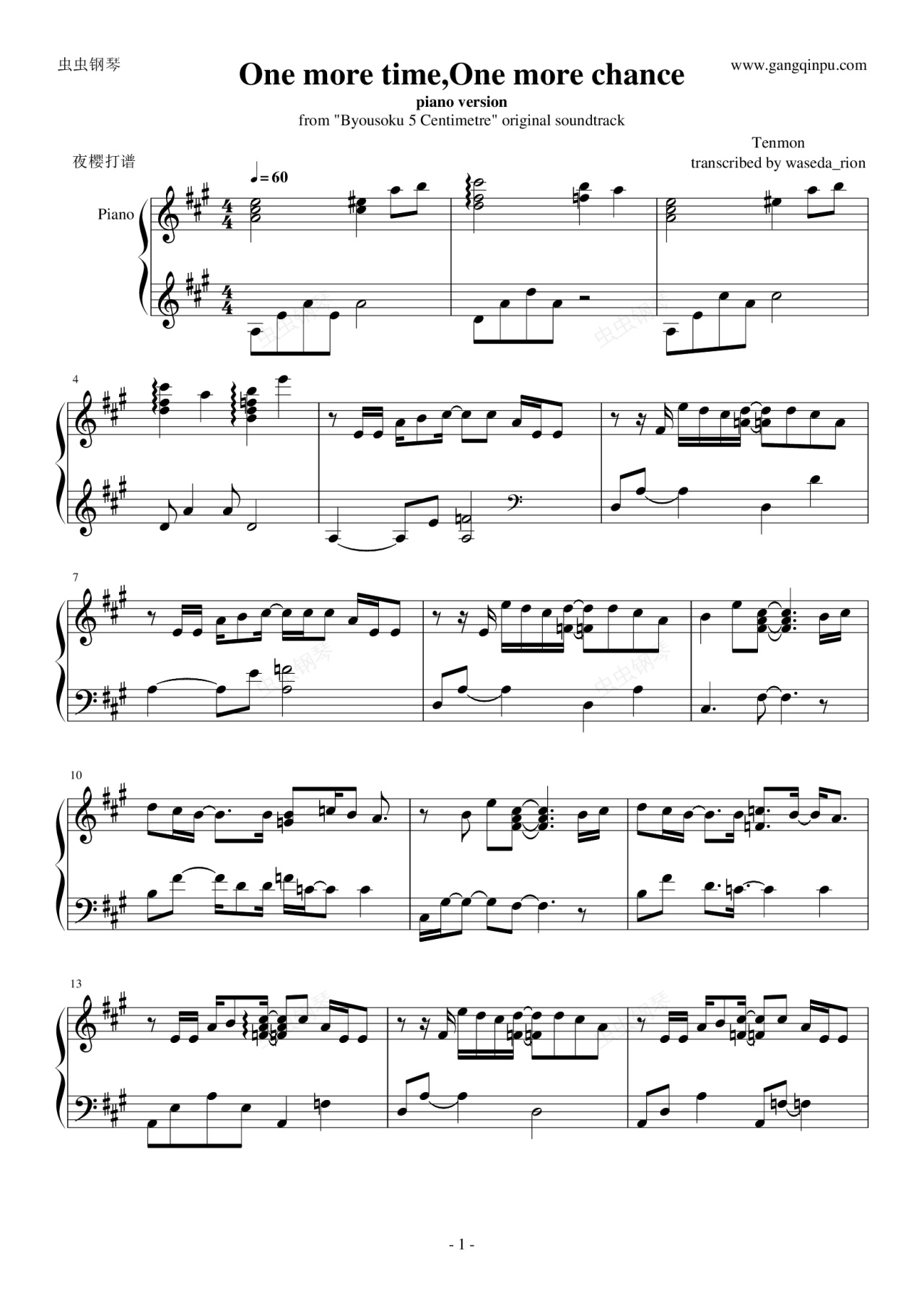 钢琴谱:One more time,one more chance