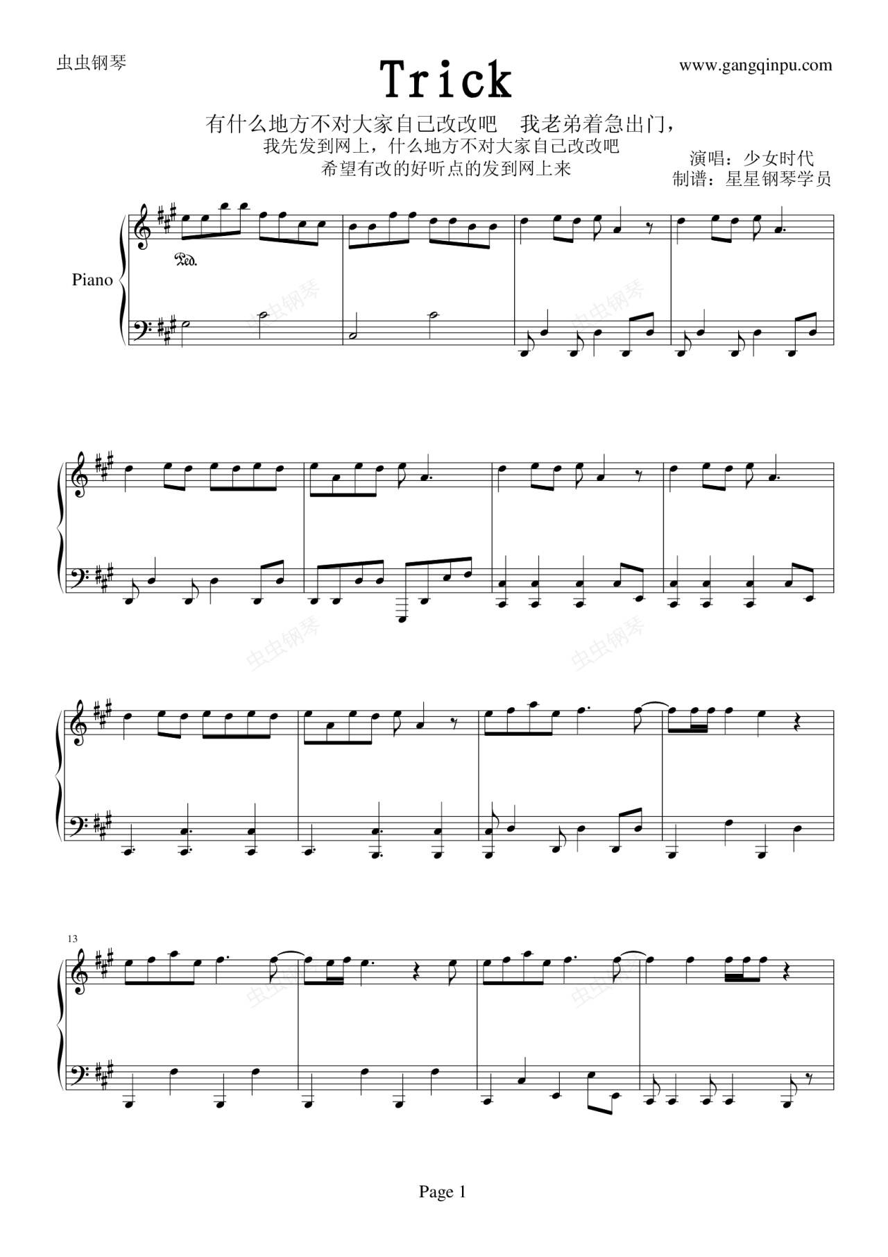 钢琴谱:Trick