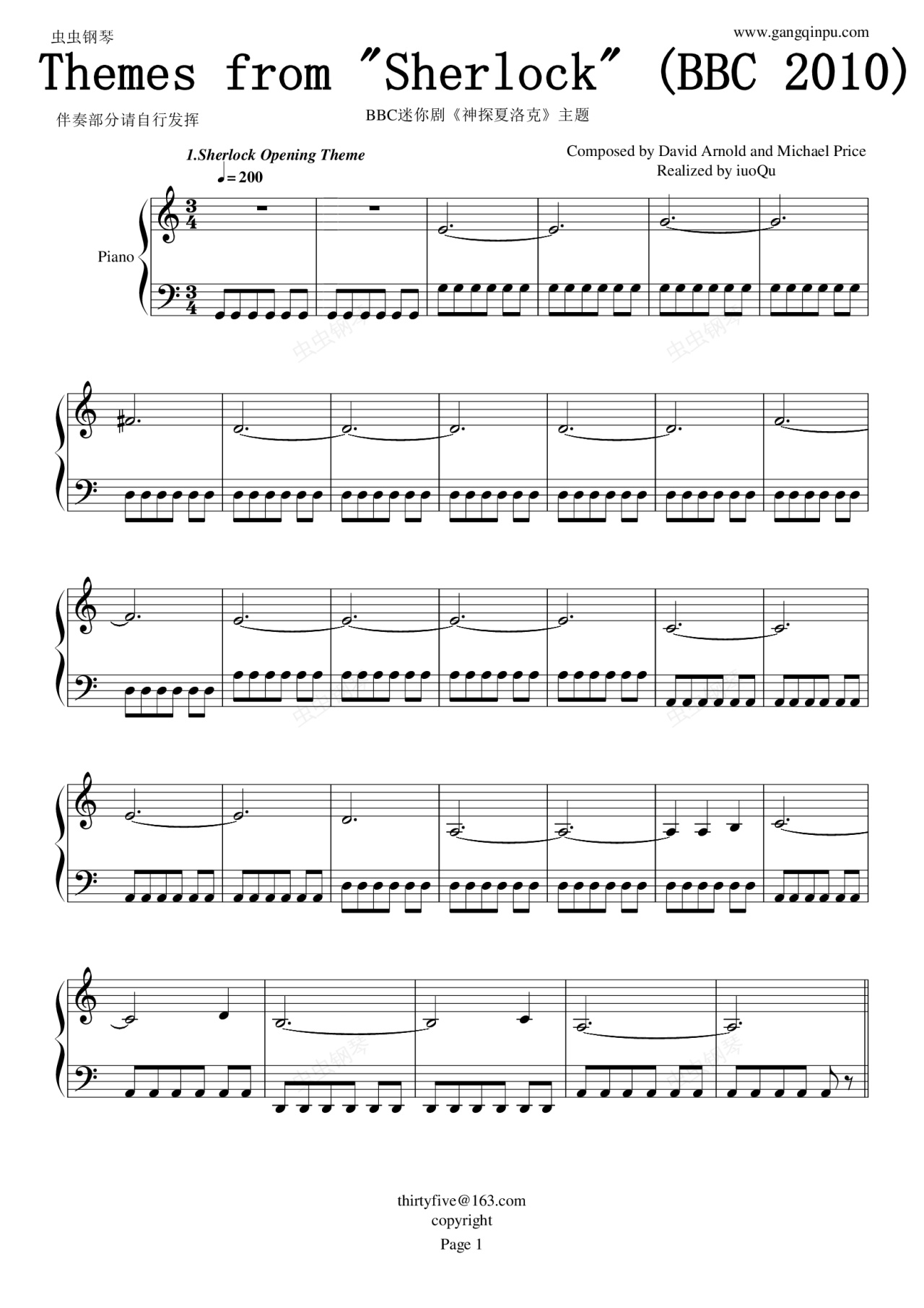 BBC迷你剧《神探夏洛克/新福尔摩斯》Sherlock两个主题 简易版