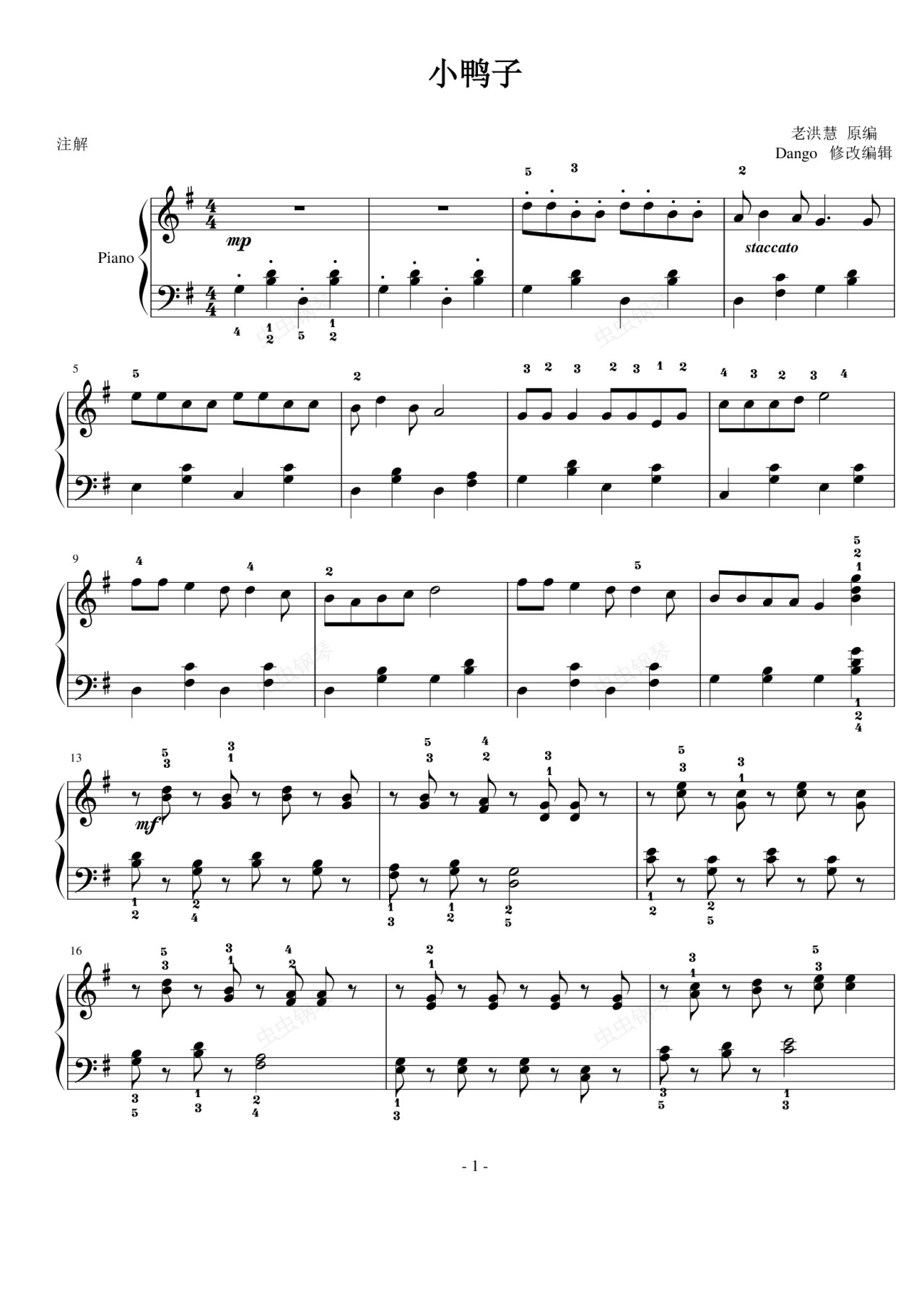 钢琴谱:小鸭子