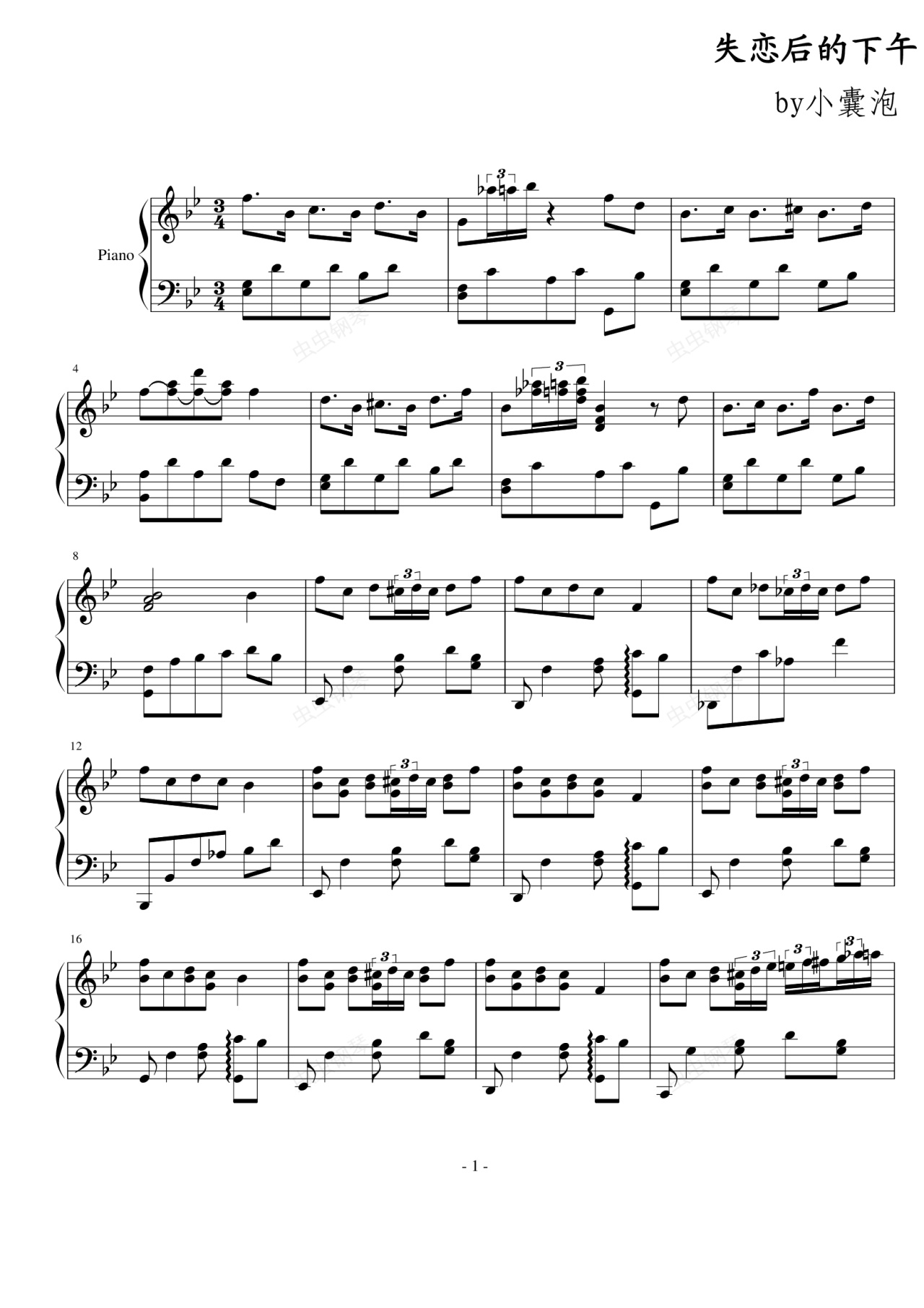 钢琴谱:失恋后的下午