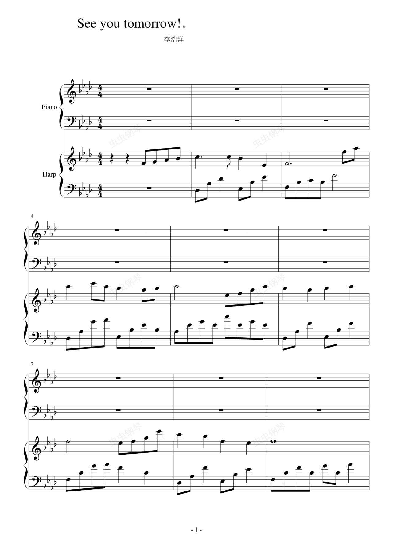 钢琴谱:See you tomorrow!