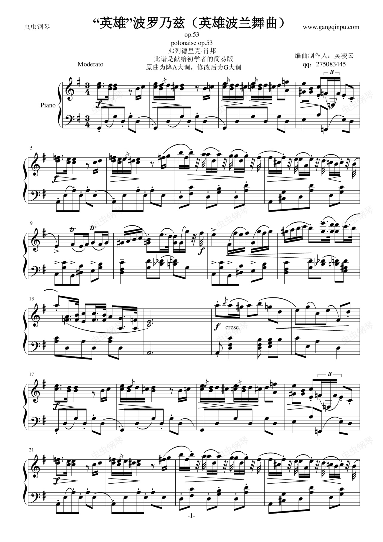 钢琴谱:英雄波兰舞曲(简易改编版)