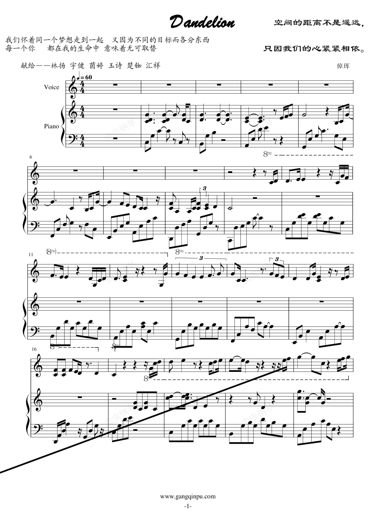 钢琴谱:Dandelion——蒲公英