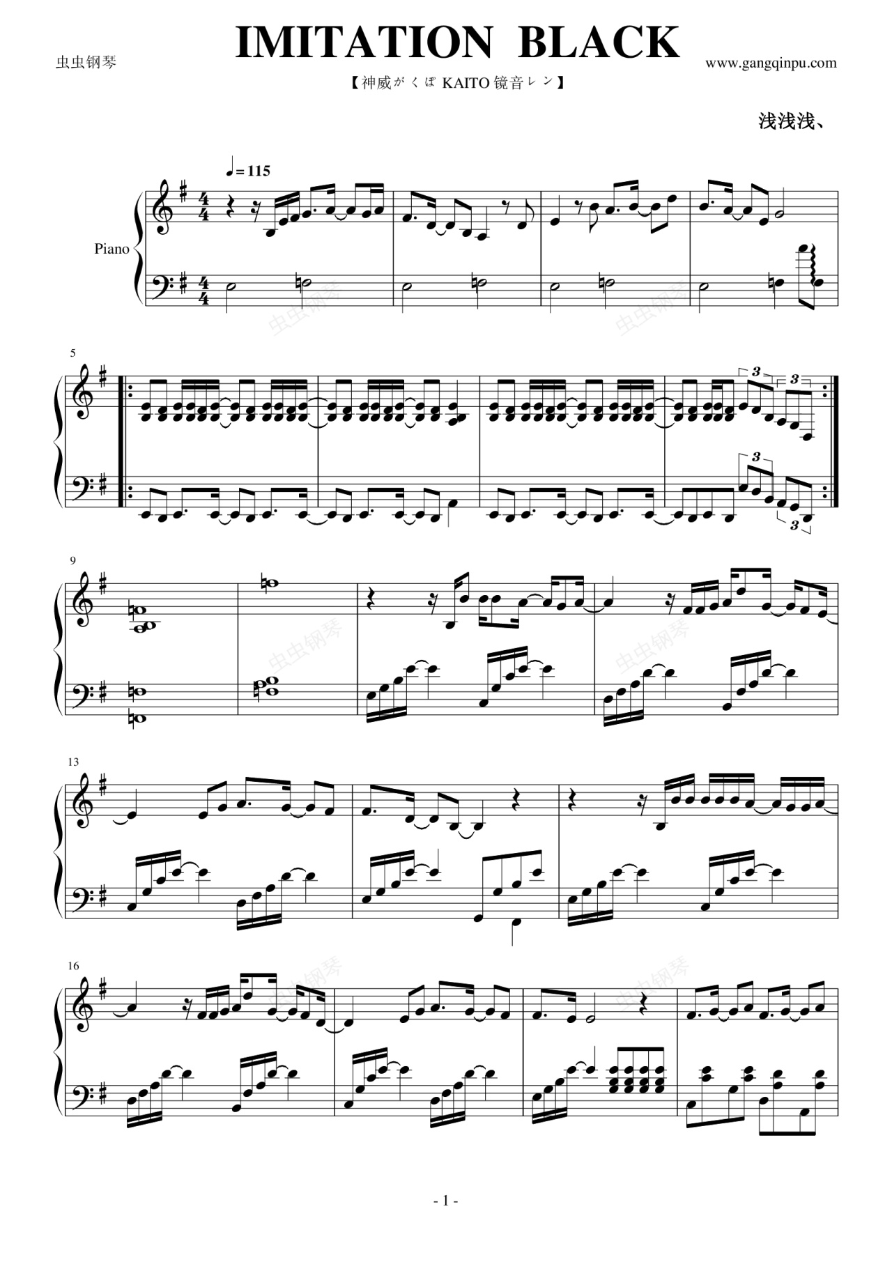 钢琴谱:【咕噜碳】IMITATION BLACK