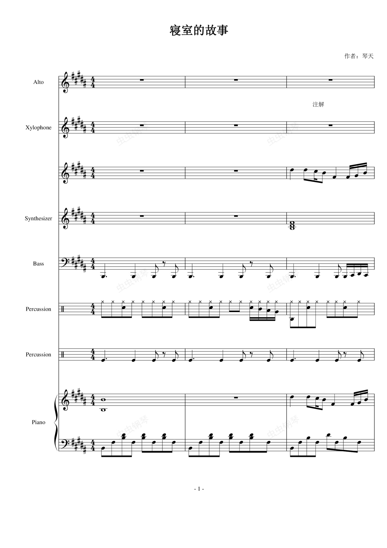 钢琴谱:寝室的故事