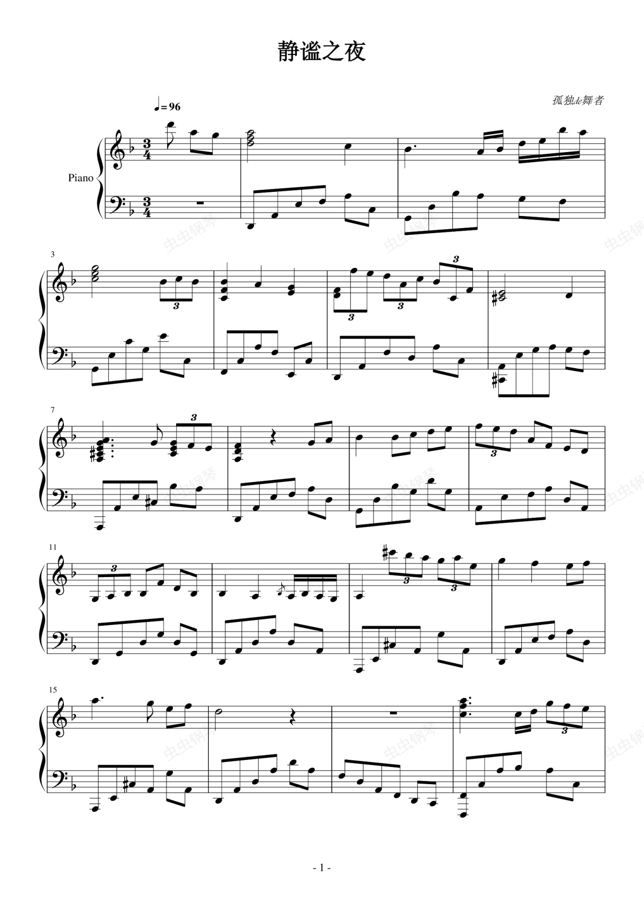钢琴谱:静谧之夜