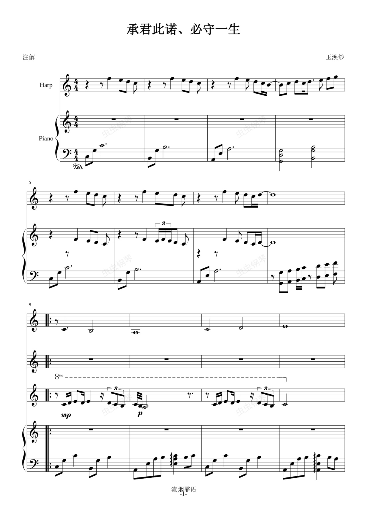钢琴谱:承君此诺必守一生