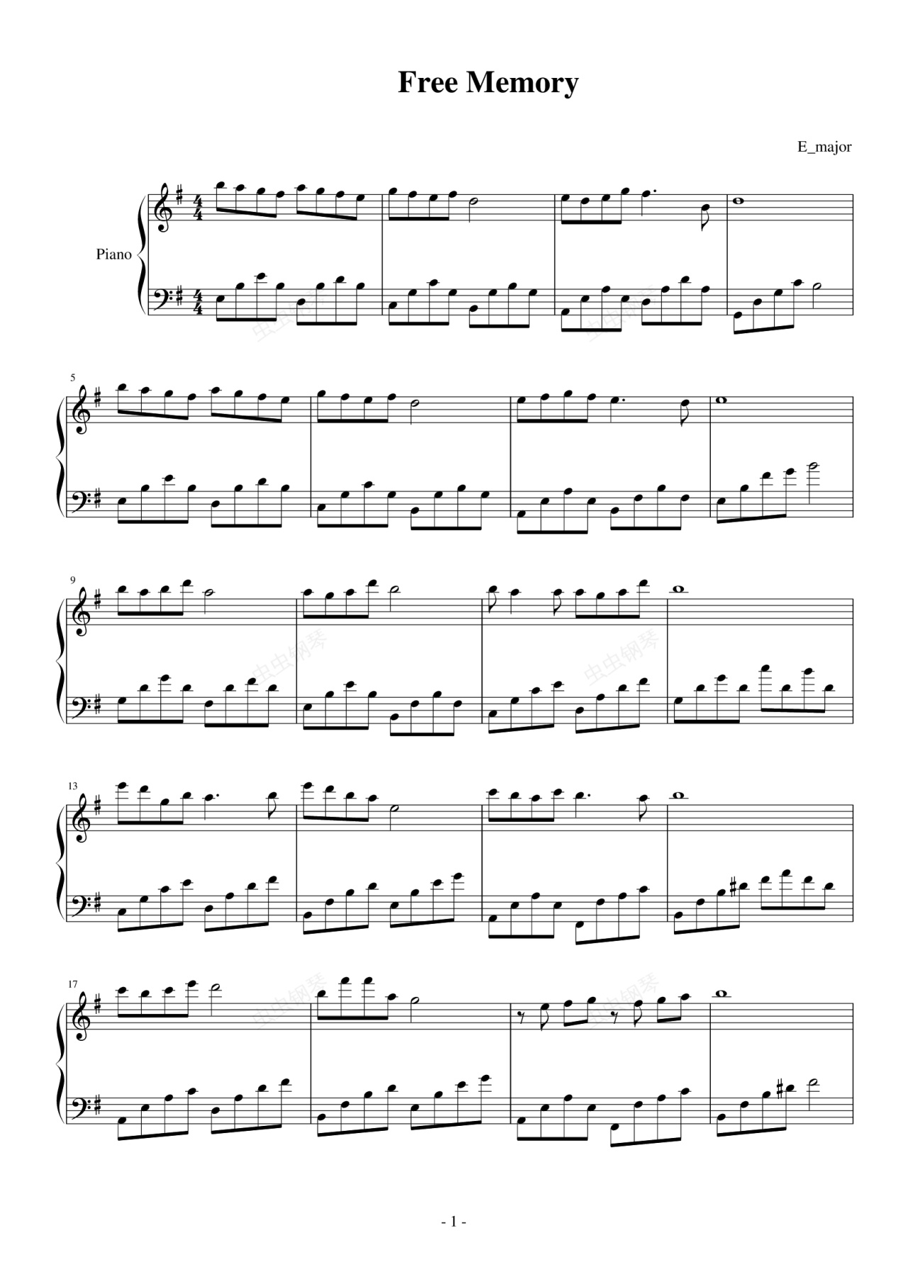 钢琴谱:Free Memory