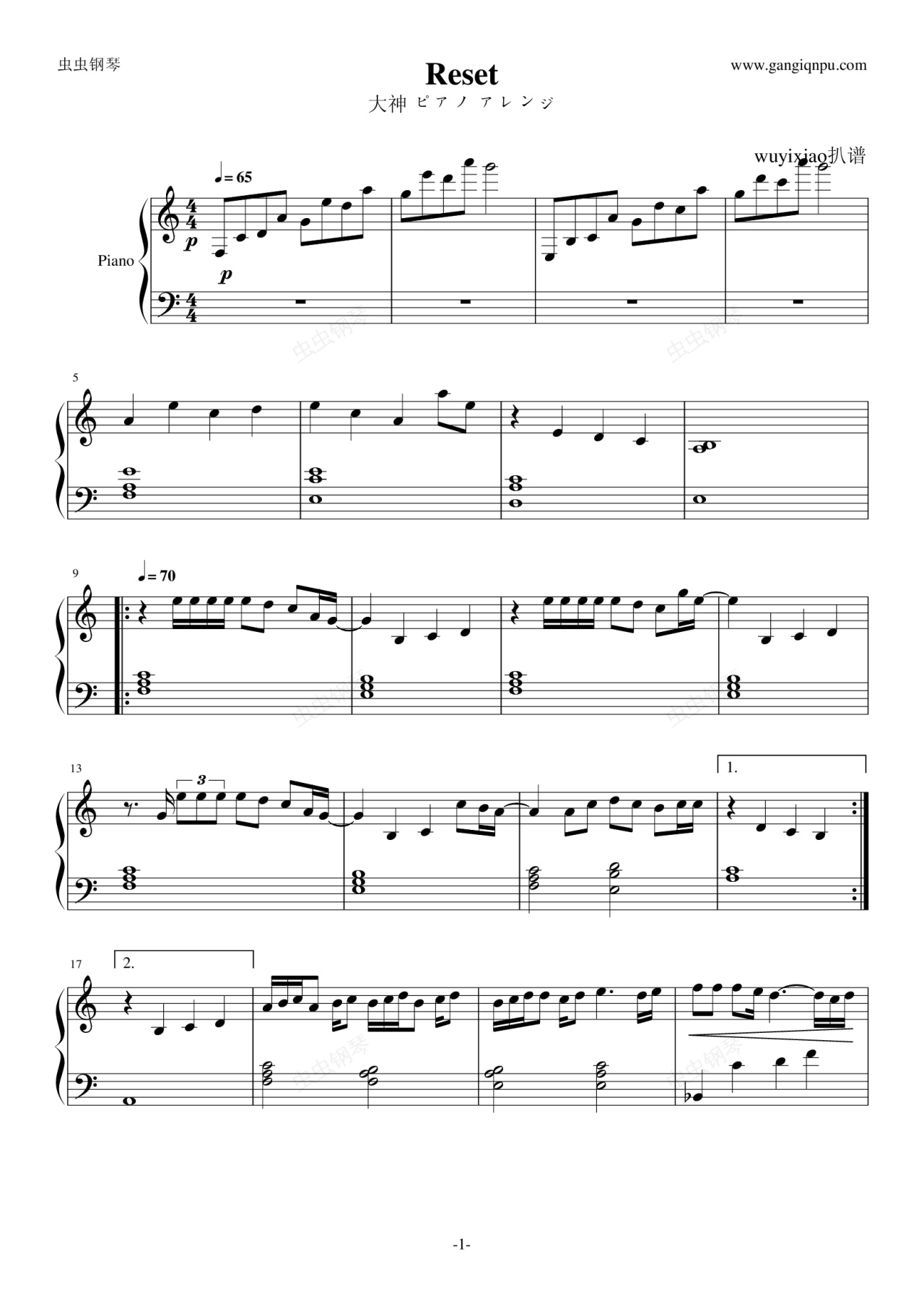 钢琴谱:Reset (大神 ピアノ アレンジ)