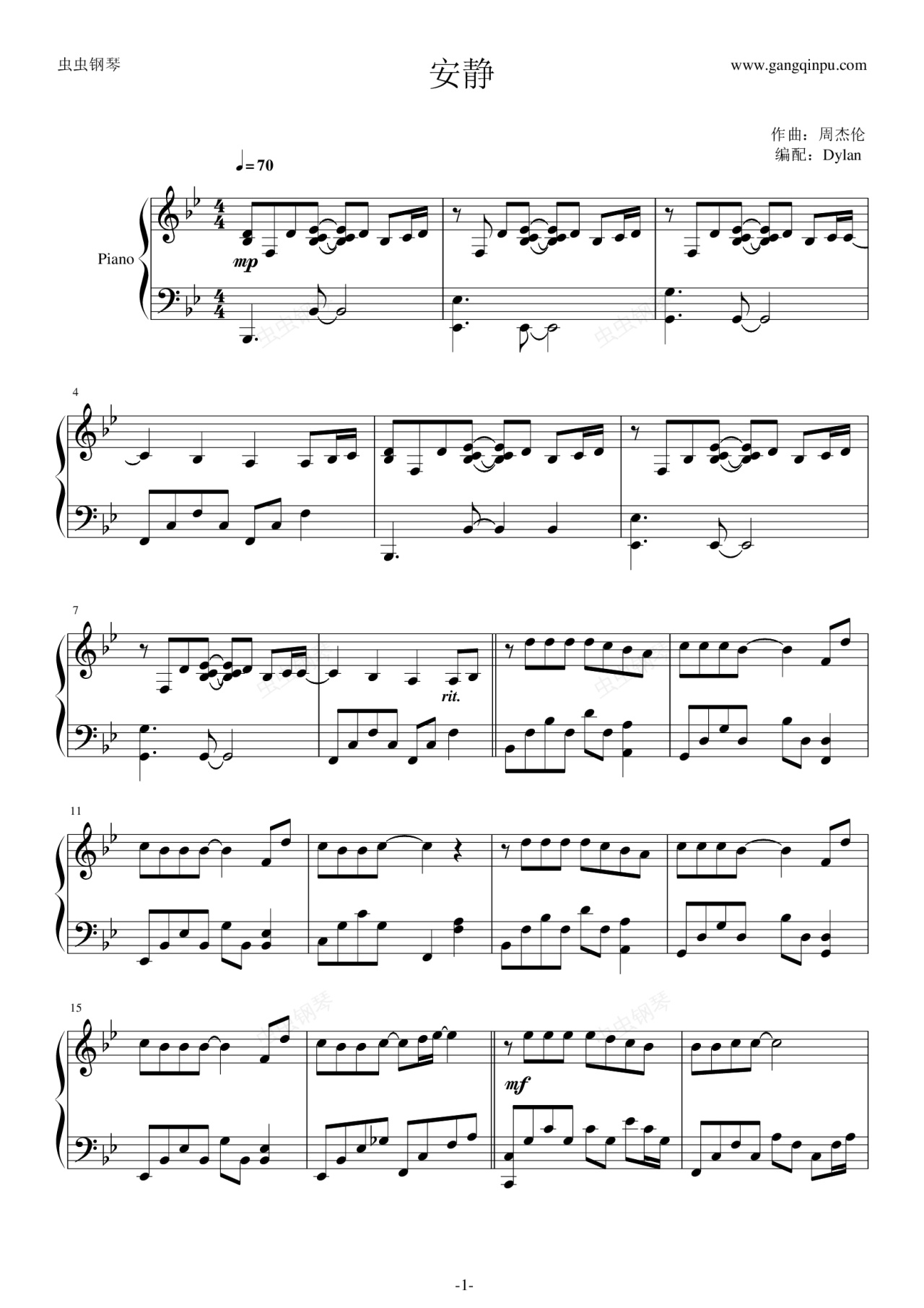 钢琴谱:安静 独奏钢琴谱