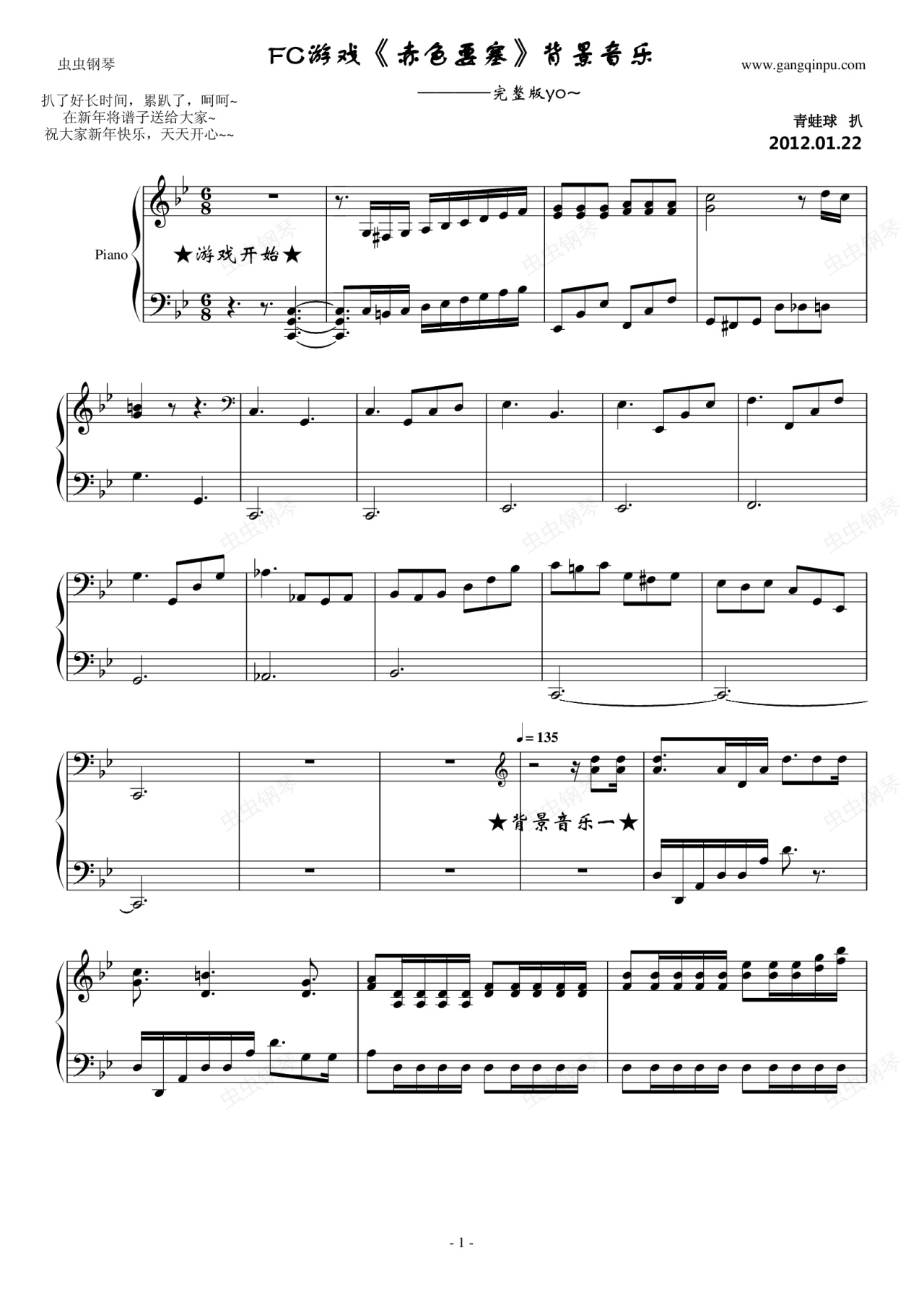钢琴谱:FC《赤色要塞》完整版