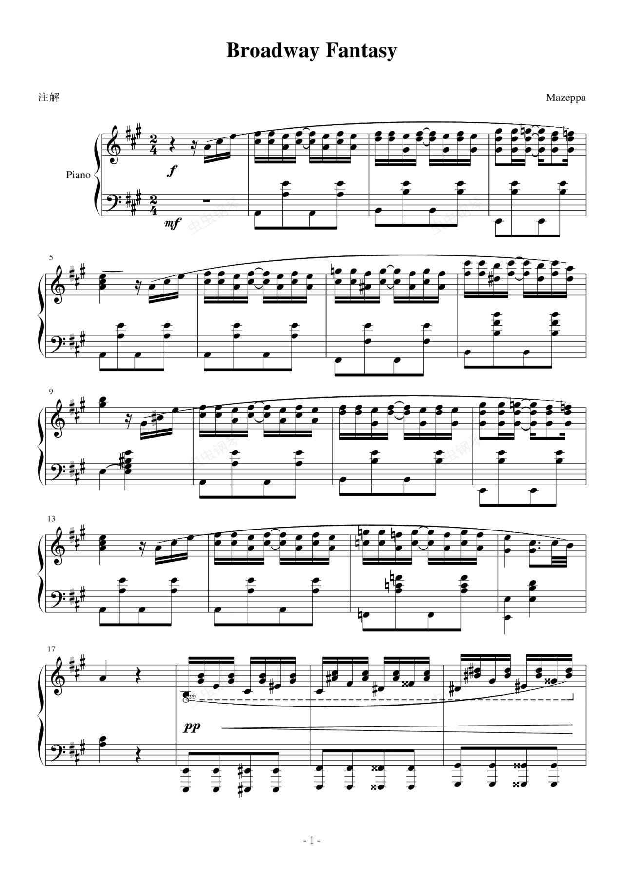 钢琴谱:Broadway Fantasy