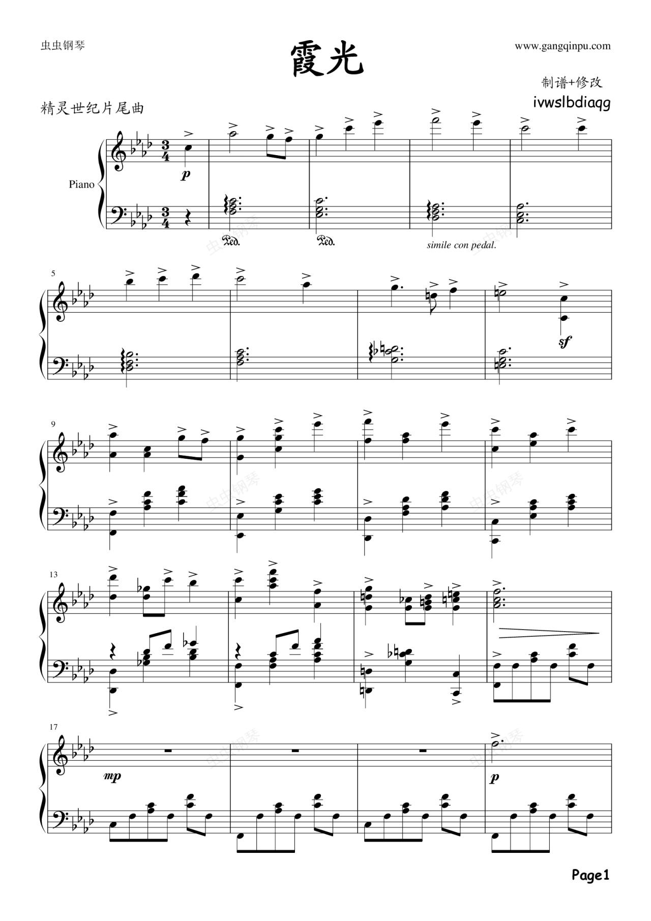 钢琴谱:霞光(改版)