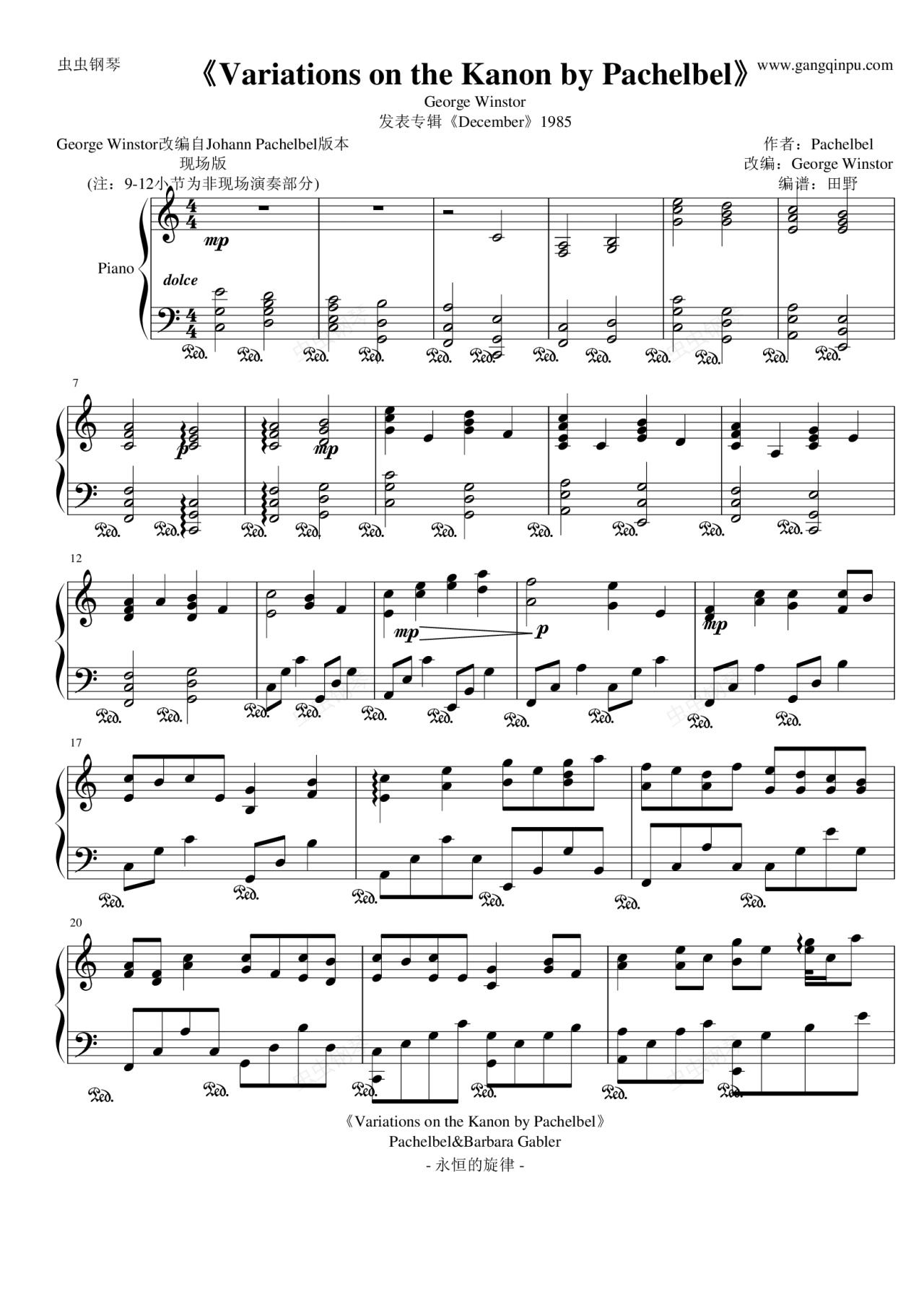 钢琴谱:《卡农》乔治温斯顿 现场版