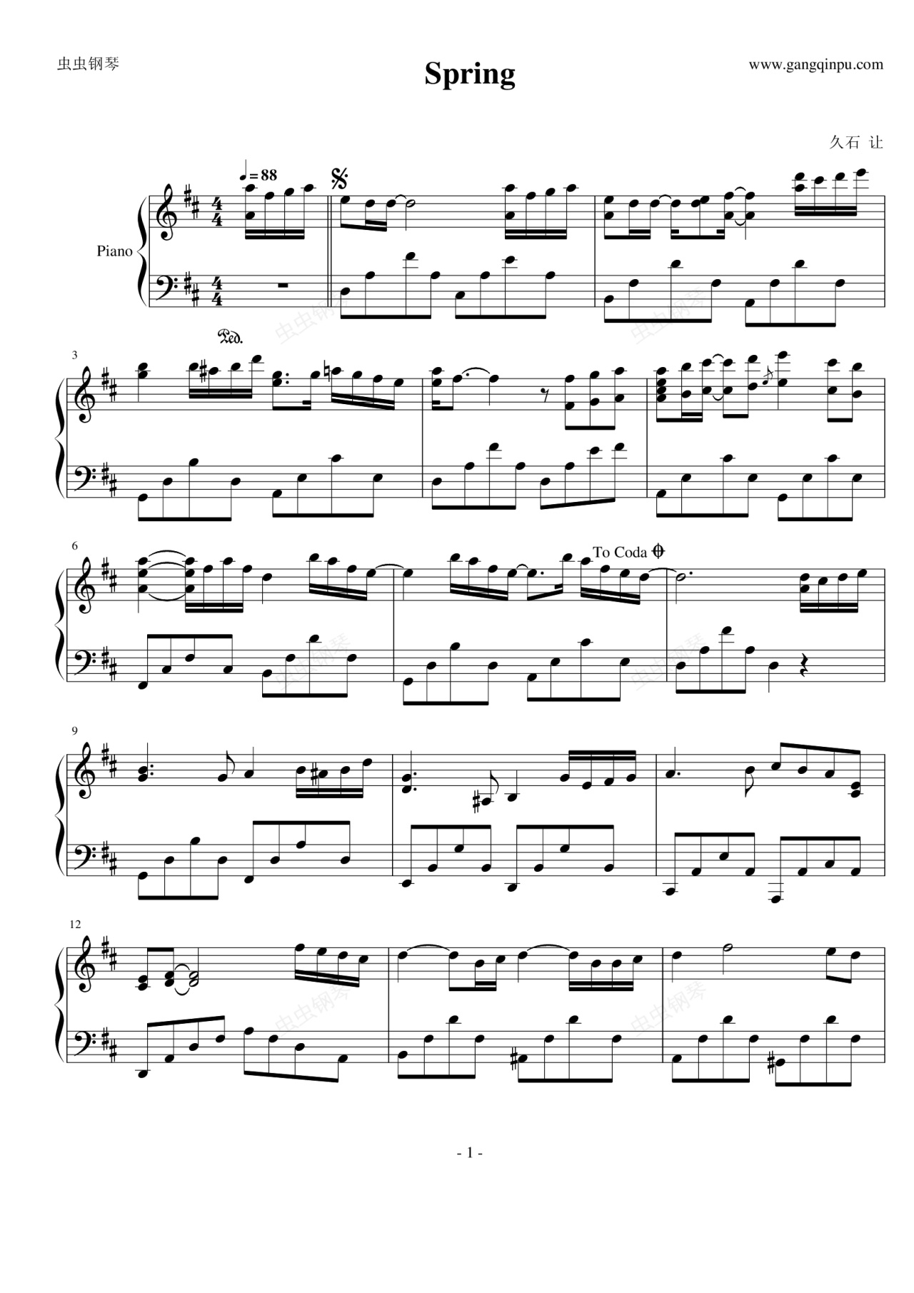 钢琴谱:spring