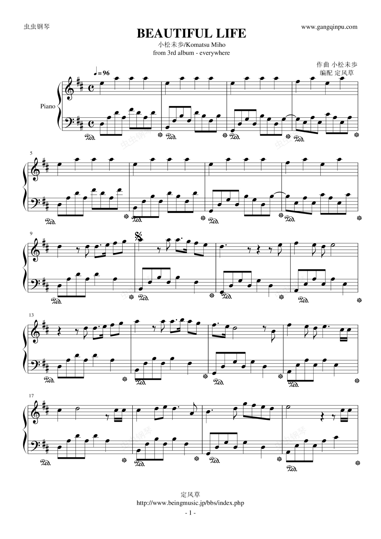 钢琴谱:美丽人生-小松未步-柯南歌手