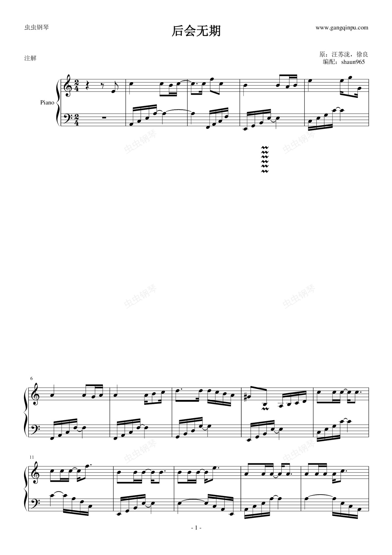 钢琴谱:后会无期-汪苏泷徐良