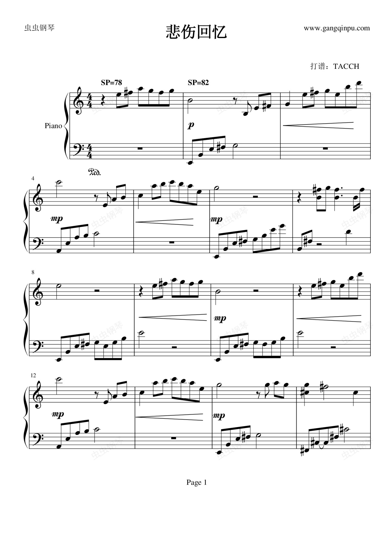 钢琴谱:悲伤回忆
