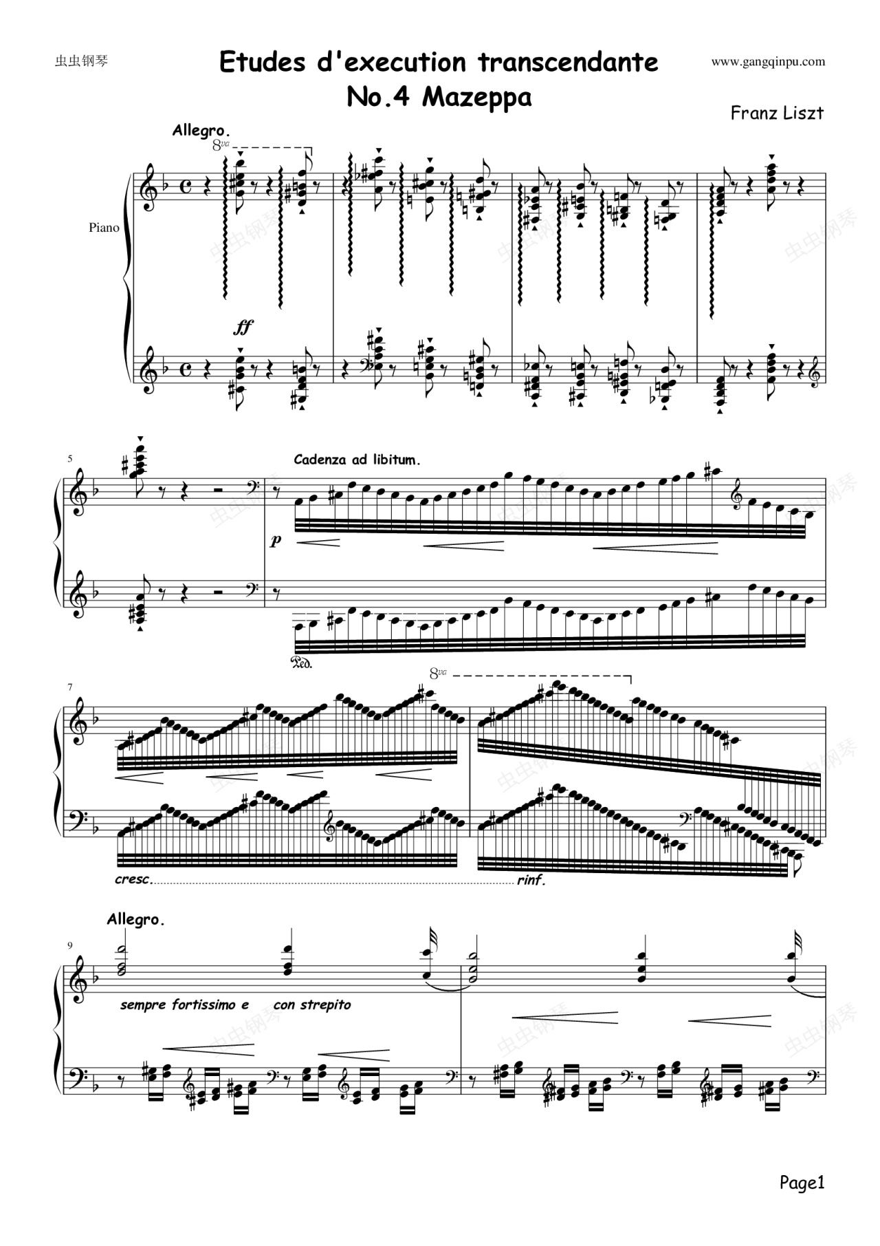 钢琴谱:Etudes dexecution transcendante No.4 (Mazeppa)Mazeppa, Symphonic Poem No.6, S.100