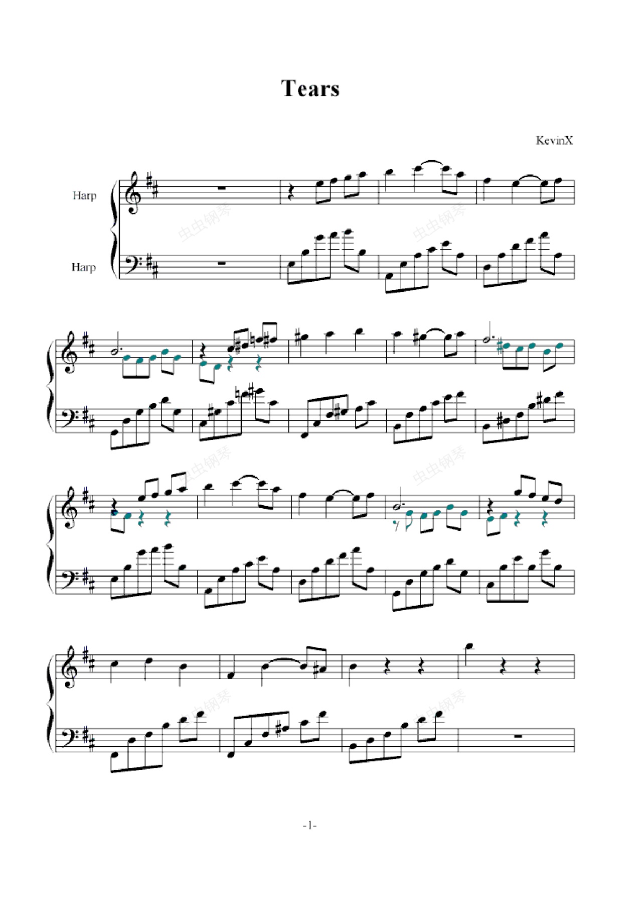 钢琴谱:Tears