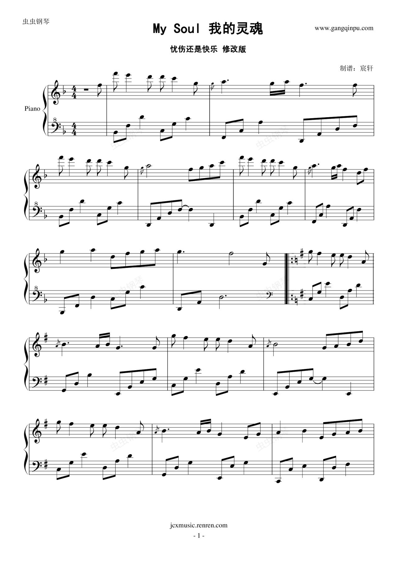 钢琴谱:My Soul 修改版