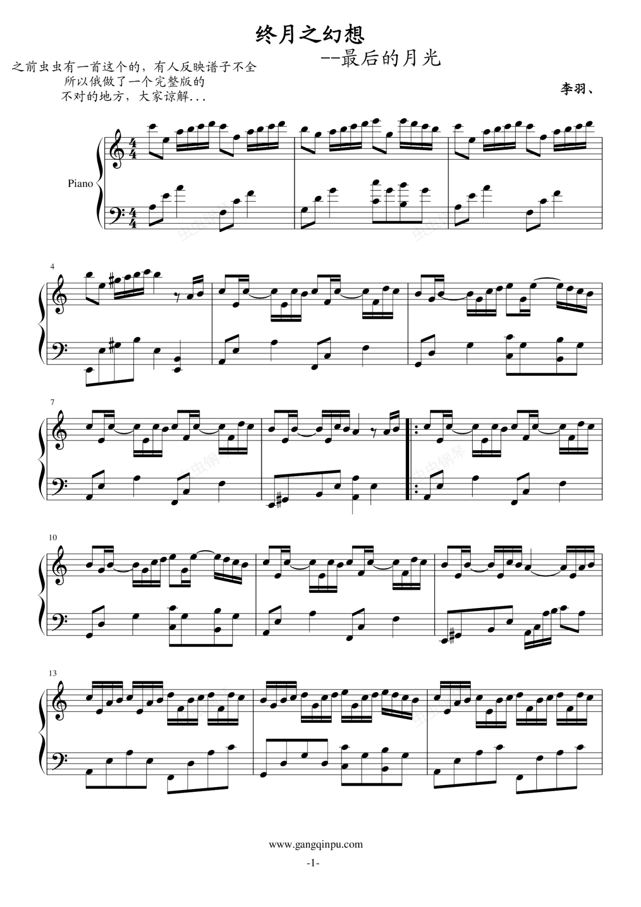钢琴谱:终月之幻想-最后的月光(完整版)